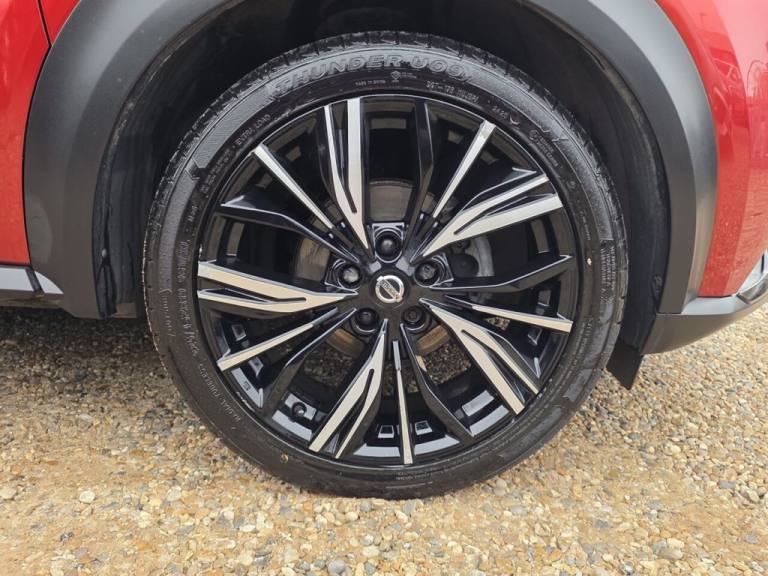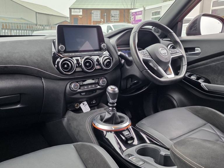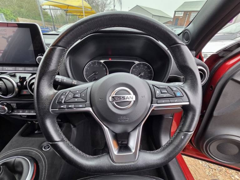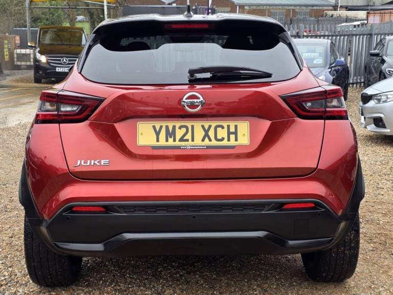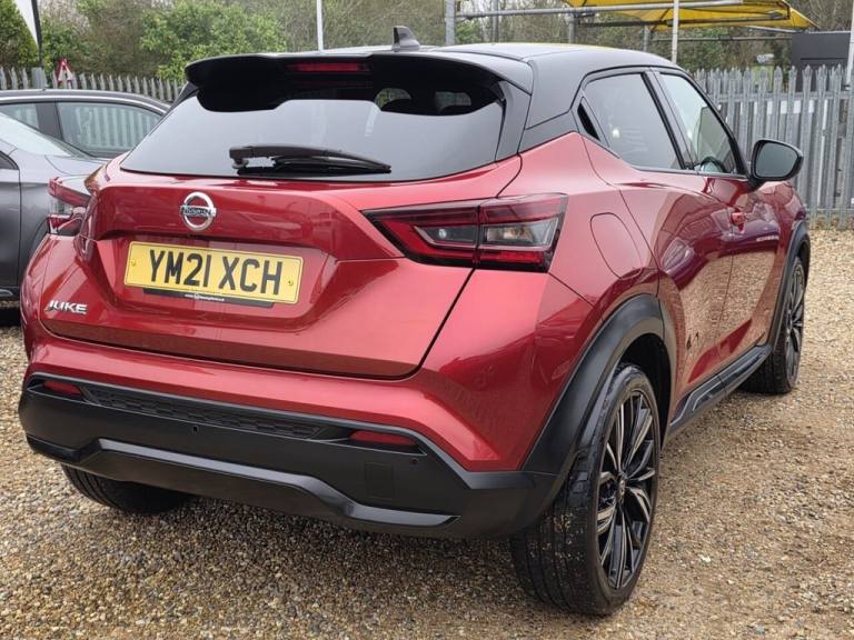 This 2021 Nissan Juke DIG-T Tekna+ is a well equipped example of this popular compact SUV. It features a 1.0 litre petrol engine and meets Euro 6 emissions standards. Inside, youll find a comfortable cabin with automatic air conditioning and a heat pack for those colder days, ensuring a pleasant driving experience. Connectivity is seamless thanks to Android Auto and Apple CarPlay integration, allowing you to easily access your favourite apps and music. The Tekna+ trim also boasts a premium Bose Personal Plus audio system, delivering an immersive sound experience. For added convenience and safety, rear parking sensors are included to assist with manoeuvring. This particular vehicle has a full service history and we will also be serviced before the new owner takes delivery, The Juke DIG-T Tekna+ offers an impressive highlight fuel economy of 48 miles per gallon, demonstrating its efficiency compared to other vehicles in its class. Furthermore, its low CO2 emissions contribute to a more environmentally conscious drive. This combination of stylish design, advanced technology, and economical performance makes the 2021 Nissan Juke DIG-T Tekna+ a compelling choice for those seeking a versatile and feature rich compact car..HEATED LEATHER SEATS , APPLE CAR PLAY AND ANDROID AUTO , BOSE PERSONAL SOUND , REVERSING CAMERA , FULL SERVICE HISTORY , Burgundy with Pearl Black Roof, Leather and Alcantara - Enigma Black, 19in Alloy Wheels - Akari, 2 x Cup Holder on Centre Console, 3 Adjustable Rear Head Restraints, 60-40 Split Rear Folding Seats, 7in Full Colour TFT Screen Combimeter, ABS with EBD and Brake Assist, Active Ride Control, Active Trace Control, Advanced Safety Shield Pack, Android Auto and Apple CarPlay, Auto Dimming Rear View Mirror, Automatic Air Conditioning, Automatic Hazard Signal and Emergency Stop Signal, Body Coloured Handles, Bose Personal Plus Audio System, Cabin Light Front and Rear, Chrome Interior Door Handles, Comfort Pack, DAB Radio, Design Pack, Door Ambient Lighting, Drive Modes - Sport-Normal-Eco, Driver and Passenger Sun Visor with Vanity Mirror, Driver-Passenger-Side and Curtain Airbags, ESP - Electronic Stability Programme, Electric Heated Auto-Folding Door Mirrors, Electric Parking Brake with Auto Hold Function, Emergency and Breakdown Call, Front Armrest, Front Bumper Finisher - Satin Silver, Front Door Pockets with Drinks Bottle Holders, Front Seat Back Pockets, Front Seat Belt Height Adjustment, Front and Rear Electric Windows with One Touch Driver Window, Front and Rear Seatbelt Reminder, Gear Console Ambient Circle Lighting, Grab Handles Passenger and Rear, Headlights - Follow Me Home Function, Headlights - High Beam Assist, Heat Pack, Height Adjustable Driver Seat, Hill Start Assist, ISOFIX Child Seat Anchoring Points - Rear x2, Intelligent Emergency Braking with Pedestrian and Cyclist Recognition, Intelligent Key with Start Push Button, Intelligent Lane Intervention and Warning, Interior Personalisation - Enigma Black, LED Daytime Running Lights, LED Headlights, LED Rear Fog Lights, LED Rear Lights, Leather Gear Knob, Leather Steering Wheel, Luggage Board System, Luggage Space Lighting, Monoform Sporty Seats, Multifunctional Steering Wheel, NissanConnect 8in Touchscreen Entertainment System, Outside Temperature Sensor, Parking Sensor - Front, Passenger Seat Height Adjustment, Power Assisted Steering, Rear Coat Hanger - Drivers Side, Rear Console USB Port, Rear Parking Sensors, Rear Spoiler, Speed Limiter, Syntech Leather Knee Pad, TPMS - Tyre Pressure Monitoring System, Telescopic Steering Wheel Adjustment, Three Blink Turn Signal, Traffic Sign Recognition, Tyre Repair Kit, USB-AUX Socket Input and Bluetooth Connectivity, VDC - Vehicle Dynamic