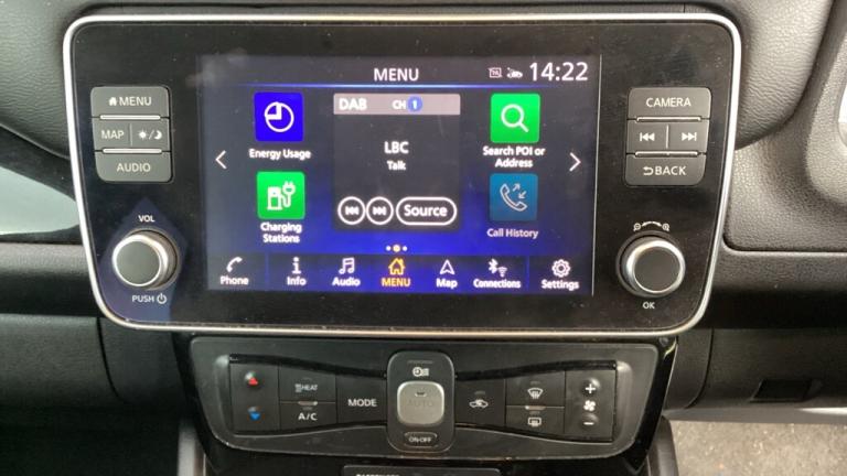 1 FORMER KEEPER, ULEZ FREE, NAVIGATION, BLUETOOTH, PARKING SENSORS, LEATHE SEATS Features Include: , 12v socket, 8in touchscreen entertainment system, bose premium audio system with 7 speakers, dab radio with apple carplay and android auto, nissan connect services, nissanconnect satellite navigation system, shark fin antenna, usb port, 17in alloy wheels, body coloured door mirrors, door handles - chrome, electric folding door mirrors, front and rear electric windows, gloss black b-pillar, integrated turn signals in mirrors, led pack, metallic blue rear bumper accents, rear privacy glass, tyre puncture repair kit, 50kw chademo quick charger, 6.6kw ac on board charger, blind spot intervention, blind spot warning, e-pedal, evse 6m or mode 3 - 6m, electric power steering, heat pump, intelligent cruise control, lane departure warning, speed limiter, 6 airbags, alarm - thatcham, anti lock braking system - abs, auto hazard lights, hill start assist, isofix on rear, intelligent emergency braking with pedestrian recognition, intelligent lane intervention, intelligent trace control, nissan i-key and start push button, propilot including electronic parking brake, rear cross traffic alert, 7in combimeter, auto dimming rear view mirror, automatic air conditioning, front seat back pockets, heat pack, illuminated charge port, leather steering wheel, manually adjustable drivers seat - slide - recline and lifter, manually adjustable passenger seat - slide and recline, rain sensing windscreen wipers, steering column - rake and reach, tech pack, headlights - follow me home function, headlights - high beam assist, intelligent auto headlights, led signature tail lights