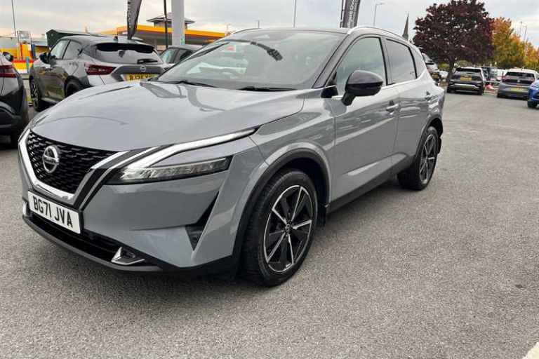 Welcome to Brayley Nissan Wolverhampton, we are delighted to offer for sale this Nissan Qashqai Tekna 1.3 Mild Hybrid manual, finished in the most sought after color combination of ceramic grey with a contrasting black roof. Elevate your everyday driving with this superb 2021 Nissan Qashqai Tekna, a crossover that blends advanced technology, refined comfort, and striking design in one smart, efficient package. This Tekna model comes equipped with a suite of premium features designed to make every journey smoother, warmer, and more enjoyable. Heated front seats and a heated steering wheel ensure cold mornings are never a hassle, while the Quick Clear windscreen defrosts your window at the touch of a button. Inside, the experience is equally refined. A full digital driver display is paired with a sharp head-up display, projecting key driving info straight into your line of sight. The built-in satellite navigation system offers intuitive route planning. Technology is at the heart of this Qashqai, with features like the 360-degree Around View Monitor and parking sensors all working together to deliver confident, assisted driving. The infotainment system supports Apple CarPlay and Android Auto, so your smartphone fits seamlessly into the drive, all whilst sat on the wireless charging pad. Finished with a panoramic glass roof, power tailgate, electronically adjustable leather-trimmed interior with memory function, and ambient lighting, this Qashqai feels spacious, modern, and comfortable. On the outside, LED matrix headlights and bold 19"" diamond-cut alloy wheels give it serious road presence, while the mild-hybrid engine offers smooth performance and strong fuel efficiency. Why buy from Brayley Nissan Wolverhampton? ? Fully Serviced and inspected ? Over 9 Months MOT ? 12-Month Warranty included ? Main Dealer Trust & Support ? HPI Clear ? Part Exchange Welcome & Competitive Finance Options