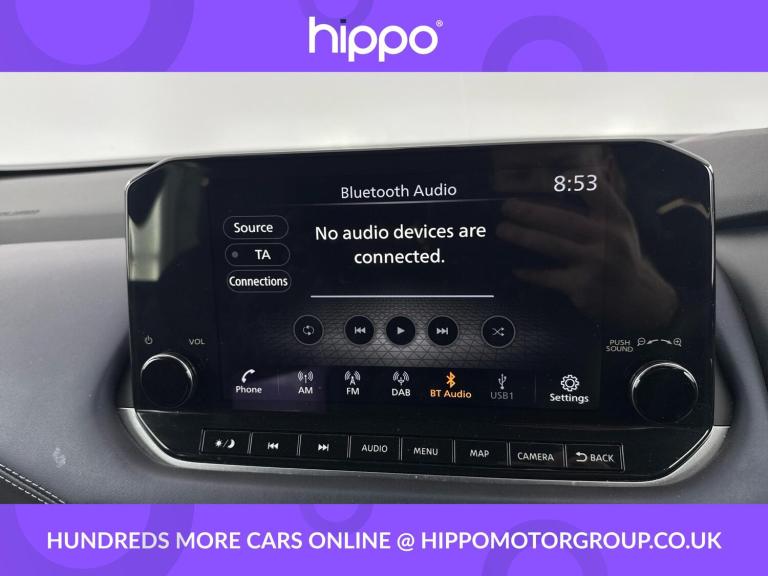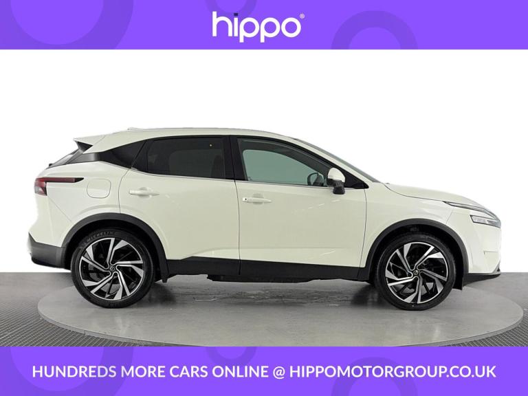 Hippo Approved is known for a wide selection of vehicles suited for various needs and budgets. Each car undergoes a rigorous 130-point quality and safety inspection at our state-of-the-art £3 million preparation centre, ensuring your peace of mind. Additionally, we offer tailored finance packages for personal and business use, making it easy to acquire your ideal car. For sale is a Nissan Qashqai 1.3 DIG-T MHEV Tekna+ SUV, an excellent choice for those seeking a reliable and stylish vehicle. This petrol hybrid model, compliant with Euro 6 standards, has only 6,961 miles on the clock, offering many more journeys to come. The car features 20-inch alloy wheels and privacy glass for a sleek exterior appearance. Stay connected with Bluetooth and enjoy your favourite tunes via the AM-FM audio system with DAB. The interior includes automatic dual-zone climate control with a pollen filter for your comfort, while the Bose Pack ensures premium sound quality. Navigate with ease using the NissanConnect Navigation system, and park confidently with front and rear parking sensors, as well as a rear view camera. Additional conveniences include a leather steering wheel, multifunctional steering wheel, and intelligent cruise control, making every drive enjoyable and stress-free.