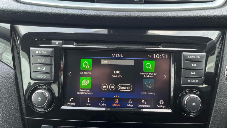 vertu Ford Durham are delighted to have this Nissan Qashqai Connecta (Glass Roof), which looks great in the black metallic paint. With only 2 owners from new this low mileage Qashqai has been very well looked after. All our vehicles at Vertu Motors come fully prepared with our peace of mind Main Dealer guarantee. Every vehicle is fully prepared both mechanically and cosmetically up to the highest standard which even includes having any tyre replaced that has less than 3mm tread depth (legal limit is 1.6mm). Every vehicle will have a minimum of 9 months MOT remaining and you will not have to service the vehicle for at least 6 months or 6000 miles. We ensure that you will have a minimum of 2 keys and to give you even further reassurance we also supply you with a 3 months complimentary warranty and a 14-day money back guarantee. Our vehicles also come with a full HPI vehicle check assuring you that your new vehicle will have no registered accident claims reported, or any outstanding finance, it also shows the vehicle has not been imported. In addition to this we also do a full Government VOSA report check to verify the mileage on all cars over 3 years old. This service comes free of charge to all our customers unlike other main dealers who charge you an admin fee for this service. We also offer nationwide delivery on all our vehicles, so call today to arrange a viewing..Climate Control, Metallic Paint, Cruise Control, Satellite Navigation, Alloy Wheels, DAB Radio, Bluetooth, Panoramic Roof, Parking Sensors, Stop Start, Low Mileage, USB, Rear Camera& Auto Lights, Velour floor mats, Auto wipers, ABS, ESP, EBD and brake assist, Nissan chassis control (intelligent ride control, intelligent trace control), Voice control system, Front parking sensors, Push button starter, Smartphone integration, Electric folding door mirrors, Carbon graphite dash trim, USB port, Body coloured door handles, Daytime running lights dip function when turn signal applied, Pollen filter, Leather gear lever, Boot lighting, Glass roof pack - Qashqai, 6 airbags - Driver, front passenger, curtain and side airbags, Driver's seat manual height adjust, Anti-theft immobiliser, 18"" Two tone alloy wheels