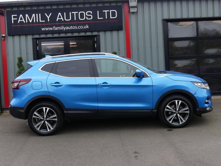 A great value example of a Nissan Qashqai finished in Magnetic blue with black and grey cloth interior throughout. Boasting a wealth of extras 18'' diamond cut alloys, 360 camera, privacy glass, keyless entry, panoramic sunroof, folding wing mirrors and much more! Carrying full service history, this is not to be missed. Presented in good condition both inside and out complete with 2 x keys + full HPI certificate + part exchange and excellent finance rates available on this model! Family Autos are proud to have the highest review rating in North Lincolnshire. Please read our reviews on Auto Trader from trusted customers.