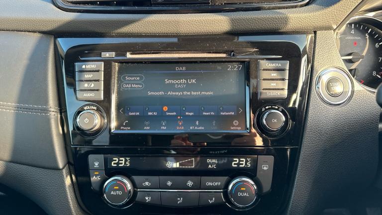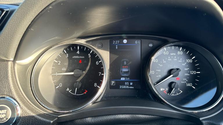 .Front and rear electric windows, ABS, Nissan chassis control (intelligent ride control, intelligent trace control, intelligent engine brake), Bluetooth with microphone, PAS, Push button start, Trip computer, Electric folding door mirrors, Steering wheel mounted audio controls, Chrome door handles, Front fog lights, Dual zone automatic air conditioning with pollen filter, Cloth upholstery, Seatbelt warning, Height adjustable front headrests, Engine immobiliser, 18"" alloy wheels, Spare wheel