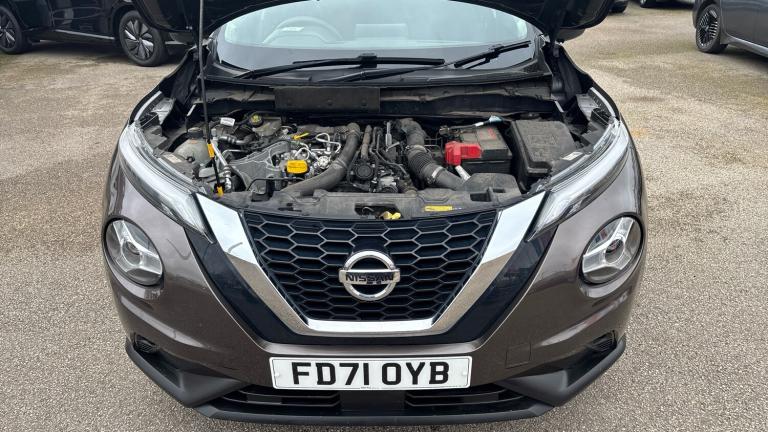 The 2022 Nissan Juke Hatchback 1.0 DiG-T 114 Acenta 5dr is a stylish and practical compact SUV that perfectly balances modern design with everyday usability. Powered by a lively and efficient 1.0-litre turbocharged petrol engine, it delivers a smooth and responsive drive that’s ideal for both city journeys and longer motorway trips. The elevated driving position gives great visibility and confidence behind the wheel, while the refined handling makes it comfortable and easy to drive in all conditions.Inside, the Juke Acenta offers a well-designed and comfortable cabin with plenty of space for passengers and a generous boot for shopping, luggage or weekend adventures. The interior feels solid and thoughtfully laid out, with intuitive controls and modern technology that keeps you connected and entertained on the move. Features such as smartphone integration, cruise control and advanced safety systems all come together to make every journey more enjoyable and reassuring.With its distinctive looks, strong build quality and excellent fuel efficiency, the 2022 Nissan Juke Acenta is a fantastic choice for anyone looking for a reliable, eye-catching hatchback that doesn’t compromise on comfort or performance..Air Conditioning, Climate Control, Metallic Paint, Cruise Control, Alloy Wheels, DAB Radio, Bluetooth, Stop Start, Low Mileage& Auto Lights, Front and rear electric window with one touch driver window, Rear wiper, Hill start assist, Electronic Stability Programme (ESP), ABS with EBD and brake assist, Intelligent emergency braking with pedestrian and cyclist recognition, Traction control, Rear drum brakes, VDC Dynamic Vehicle Control, Voice recognition, Power Steering, Rear view camera, Lane departure warning system, Traffic sign recognition, Intelligent lane intervention, Cruise control + speed limiter, Idle start/stop system, Outside temperature sensor, Apple CarPlay and Google Android auto, 4.2"" full colour TFT screen combimeter, Emergency and breakdown call, Nissan connect services and Wifi connection, Trip computer, Nissan connect 8"" touch screen entertainment system, Pearl black door mirrors, Electrically adjustable door mirrors with integrated indicators