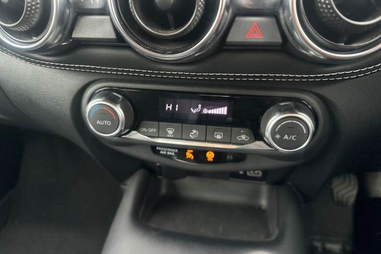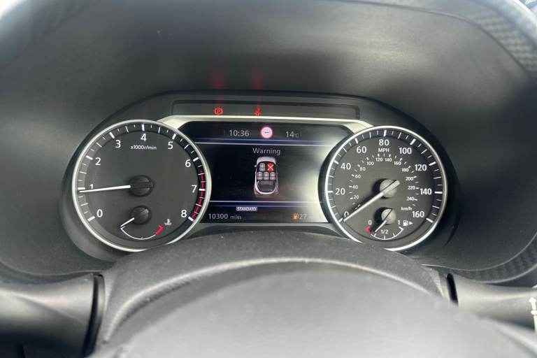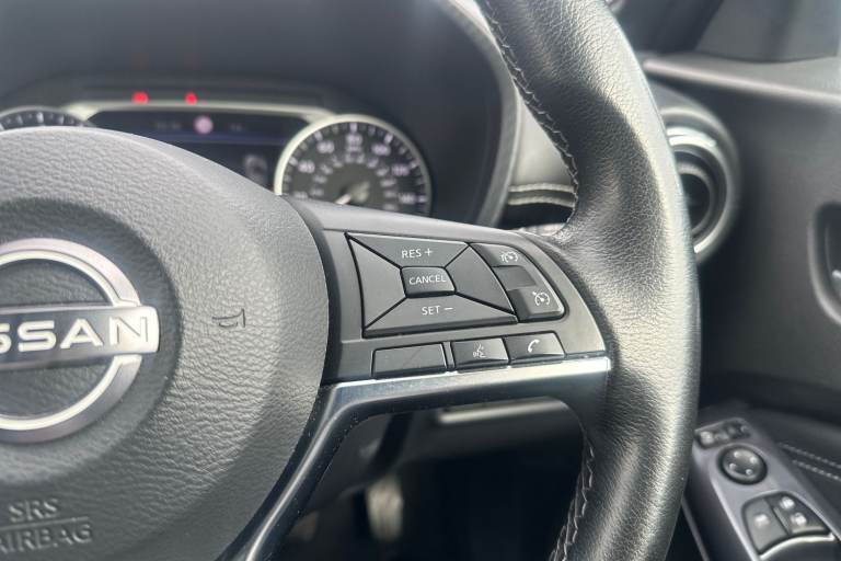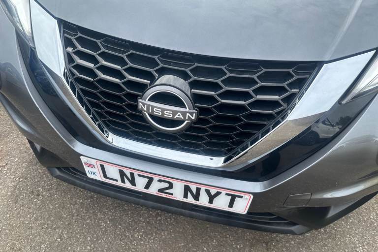 ..7'' full colour TFT screen combimeter, Apple CarPlay and Google Android auto, Drive modes select (Eco, normal and sport), Emergency and breakdown call, Front parking sensor, Idle start/stop system, Intelligent lane intervention, Lane departure warning system, Nissan connect 8'' touch screen entertainment system, Nissan connect nav with TomTom traffic, Nissan connect services and Wifi connection, Outside temperature sensor, Power Steering, Rear parking sensor, Traffic sign recognition, Trip computer, Voice recognition, Gasoline particulate filter, 6 speakers, Bluetooth system, USB, Aux-in and 12V socket, DAB Digital radio, Rear console USB port, Auto dimming interior rear view mirror, Auto headlights, Automatic hazard signal with emergency stop signal, Body colour bumpers, Body colour door handles, Electrically adjustable door mirrors with integrated indicators, Follow me home headlights, Front and rear electric window with one touch driver window, Heated and auto folding door mirrors, High beam assist, LED daytime running lights, LED headlamps, LED rear fog lamp, LED rear lamps, Rain sensor windscreen wipers, Rear privacy glass, Rear side wing doors, Rear wiper, Three blink turn signal, 3 height adjustable rear headrests, 3 seat bench in 2nd row, 60/40 split folding rear seat, Automatic climate control, Card holder on driver sunvisor, Cloth upholstery with black and metallic grey syntech leather inserts, Driver and passenger sliding and reclining seats, Driver side rear coat hanger, Driver/passenger sunvisors and vanity mirrors, Front and rear cabin lights, Front armrest, Front door pockets with bottle holders, Front head restraints, Front/rear passenger grab handles, Grey synthetic leather kneepad, Height adjustable driver's seat, Internal chrome door handles, Leather gearshift knob, Leather steering wheel, Luggage board, Luggage space lighting, Monoform sporty seats, Multifunction steering wheel, Rear door bottle holders, Single front passenger seat, Telescopic steering wheel adjustment, Two cupholders in front centre console, Two rear isofix child seat anchorage points with top tether, Welcome light and console tray ambient lighting, ABS with EBD and brake assist, Active ride control, Active Trace Control, Driver and passenger airbags, Driver and passenger side airbags, Electric handbrake with auto hold function, Electronic Stability Programme (ESP), Front and rear curtain airbags, Height adjustable seatbelts, Hill start assist, Intelligent emergency