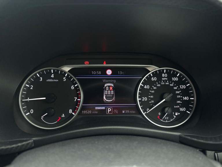 ..7'' full colour TFT screen combimeter, Apple CarPlay and Google Android auto, Drive modes select (Eco, normal and sport), eCall emergency call system, Emergency and breakdown call, Front parking sensor, Idle start/stop system, Intelligent lane intervention, Lane departure warning system, Nissan connect 8'' touch screen entertainment system, Nissan connect nav with TomTom traffic, Nissan connect services and Wifi connection, Outside temperature sensor, Power Steering, Rear parking sensor, Traffic sign recognition, Trip computer, Voice recognition, Gasoline particulate filter, Bluetooth system, USB, Aux-in and 12V socket, Bose personal plus audio system with 8 speakers(4 speakers and 2 headrest speaker for driver and passenger seats), Bose personal sound stage control, DAB Digital radio, Front lower bumper painted in silver finisher, Rear console USB port, Auto dimming interior rear view mirror, Auto headlights, Automatic hazard signal with emergency stop signal, Body colour bumpers, Body colour door handles, Electrically adjustable door mirrors with integrated indicators, Follow me home headlights, Front and rear electric window with one touch driver window, Heated and auto folding door mirrors, High beam assist, LED daytime running lights, LED front fog lights, LED headlamps, LED rear fog lamp, LED rear lamps, Rain sensor windscreen wipers, Rear privacy glass, Rear side wing doors, Rear wiper, Thermaclear heated windscreen, Three blink turn signal, 3 height adjustable rear headrests, 3 seat bench in 2nd row, 60/40 split folding rear seat, Automatic climate control, Card holder on driver sunvisor, Door ambient lighting, Driver and passenger sliding and reclining seats, Driver seat back pocket, Driver side rear coat hanger, Driver/passenger sunvisors and vanity mirrors, Front and rear cabin lights, Front armrest, Front door pockets with bottle holders, Front head restraints, Front passenger isofix child seat anchorage point, Front/rear passenger grab handles, Gear console ambient circle lighting, Grey synthetic leather kneepad, Heated front seats, Height adjustable driver's seat, Height adjustable passenger seat, Internal chrome door handles, Leather gearshift knob, Leather steering wheel, Luggage board, Luggage space lighting, Monoform sporty seats, Multifunction steering wheel, Passenger seat back pocket, Rear door bottle holders, Single front passenger seat, Steering wheel mounted gearshift paddles, Telescopic steering wheel adjustment, Two cupholders