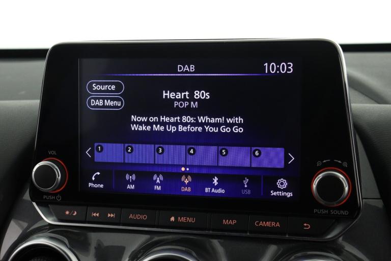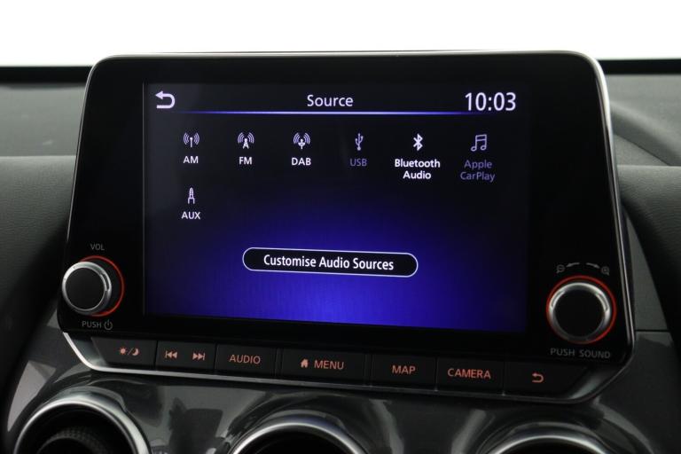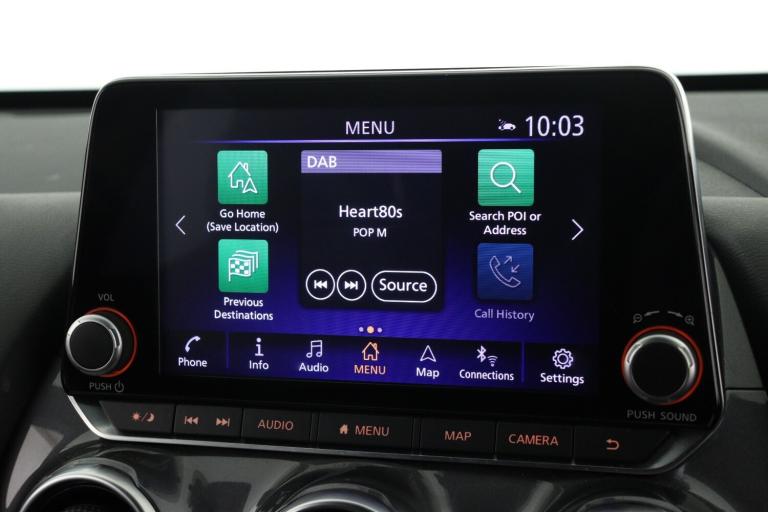 ..7'' full colour TFT screen combimeter, Apple CarPlay and Google Android auto, Drive modes select (Eco, normal and sport), Emergency and breakdown call, Front parking sensor, Idle start/stop system, Intelligent lane intervention, Lane departure warning system, Nissan connect 8'' touch screen entertainment system, Nissan connect nav with TomTom traffic, Nissan connect services and Wifi connection, Outside temperature sensor, Power Steering, Rear parking sensor, Traffic sign recognition, Trip computer, Voice recognition, Gasoline particulate filter, 10 Bose speakers 6 speakers and 2 headrest speakers for driver/passenger seats, Bluetooth system, USB, Aux-in and 12V socket, Bose personal sound stage control, DAB Digital radio, Rear console USB port, Auto dimming interior rear view mirror, Auto headlights, Automatic hazard signal with emergency stop signal, Body colour bumpers, Body colour door handles, Electrically adjustable door mirrors with integrated indicators, Follow me home headlights, Front and rear electric window with one touch driver window, Heated and auto folding door mirrors, High beam assist, LED daytime running lights, LED front fog lights, LED headlamps, LED rear fog lamp, LED rear lamps, Rain sensor windscreen wipers, Rear privacy glass, Rear side wing doors, Rear wiper, Thermaclear heated windscreen, Three blink turn signal, 3 height adjustable rear headrests, 3 seat bench in 2nd row, 60/40 split folding rear seat, Automatic climate control, Card holder on driver sunvisor, Door ambient lighting, Driver and passenger sliding and reclining seats, Driver seat back pocket, Driver side rear coat hanger, Driver/passenger sunvisors and vanity mirrors, Front and rear cabin lights, Front armrest, Front door pockets with bottle holders, Front head restraints, Front passenger isofix child seat anchorage point, Front/rear passenger grab handles, Gear console ambient circle lighting, Grey synthetic leather kneepad, Heated front seats, Height adjustable driver's seat, Height adjustable passenger seat, Internal chrome door handles, Leather gearshift knob, Leather steering wheel, Luggage board, Luggage space lighting, Monoform sporty seats, Multifunction steering wheel, Passenger seat back pocket, Rear door bottle holders, Single front passenger seat, Steering wheel mounted gearshift paddles, Synthetic leather upholstery, Telescopic steering wheel adjustment, Two cupholders in front centre console, Two rear isofix child seat anchorage points with top