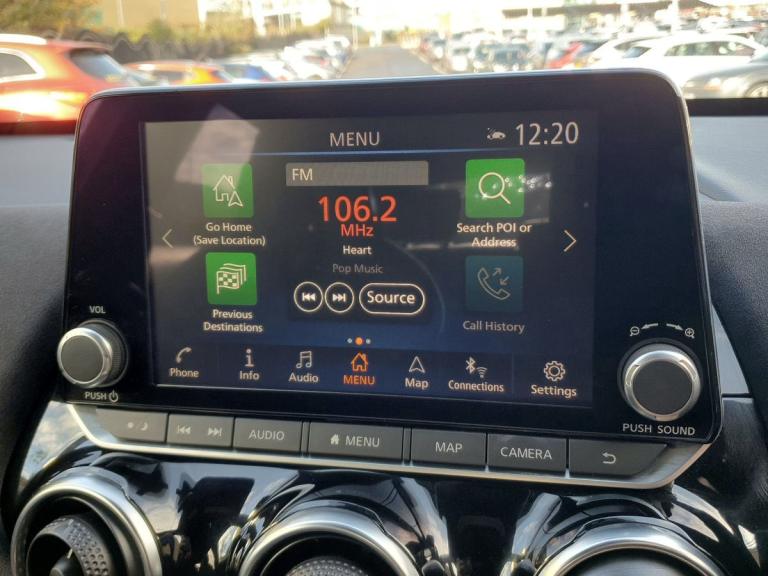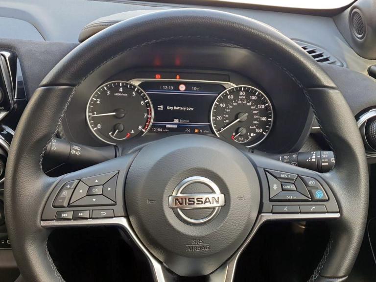 ..7'' full colour TFT screen combimeter, Apple CarPlay and Google Android auto, Drive modes select (Eco, normal and sport), eCall emergency call system, Emergency and breakdown call, Front parking sensor, Idle start/stop system, Intelligent lane intervention, Lane departure warning system, Nissan connect 8'' touch screen entertainment system, Nissan connect nav with TomTom traffic, Nissan connect services and Wifi connection, Outside temperature sensor, Power Steering, Rear parking sensor, Traffic sign recognition, Trip computer, Voice recognition, Gasoline particulate filter, Bluetooth system, USB, Aux-in and 12V socket, Bose personal plus audio system with 8 speakers(4 speakers and 2 headrest speaker for driver and passenger seats), Bose personal sound stage control, DAB Digital radio, Front lower bumper painted in silver finisher, Rear console USB port, Auto dimming interior rear view mirror, Auto headlights, Automatic hazard signal with emergency stop signal, Body colour bumpers, Body colour door handles, Electrically adjustable door mirrors with integrated indicators, Follow me home headlights, Front and rear electric window with one touch driver window, Heated and auto folding door mirrors, High beam assist, LED daytime running lights, LED front fog lights, LED headlamps, LED rear fog lamp, LED rear lamps, Rain sensor windscreen wipers, Rear privacy glass, Rear side wing doors, Rear wiper, Thermaclear heated windscreen, Three blink turn signal, 3 height adjustable rear headrests, 3 seat bench in 2nd row, 60/40 split folding rear seat, Automatic climate control, Card holder on driver sunvisor, Door ambient lighting, Driver and passenger sliding and reclining seats, Driver seat back pocket, Driver side rear coat hanger, Driver/passenger sunvisors and vanity mirrors, Front and rear cabin lights, Front armrest, Front door pockets with bottle holders, Front head restraints, Front passenger isofix child seat anchorage point, Front/rear passenger grab handles, Gear console ambient circle lighting, Grey synthetic leather kneepad, Heated front seats, Height adjustable driver's seat, Height adjustable passenger seat, Internal chrome door handles, Leather gearshift knob, Leather steering wheel, Luggage board, Luggage space lighting, Monoform sporty seats, Multifunction steering wheel, Passenger seat back pocket, Rear door bottle holders, Single front passenger seat, Telescopic steering wheel adjustment, Two cupholders in front centre console, Two rear isofix