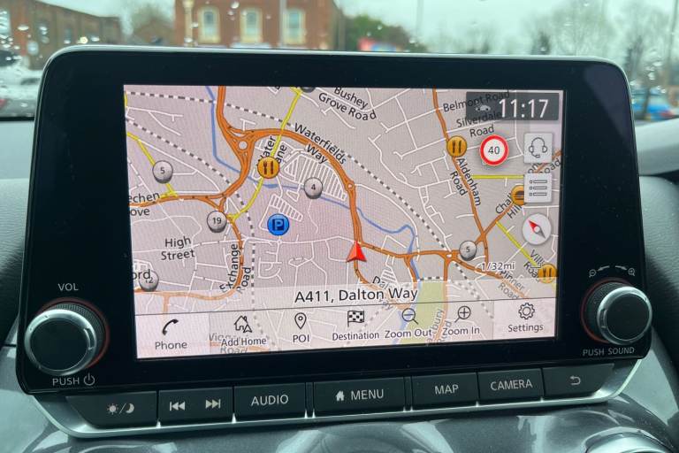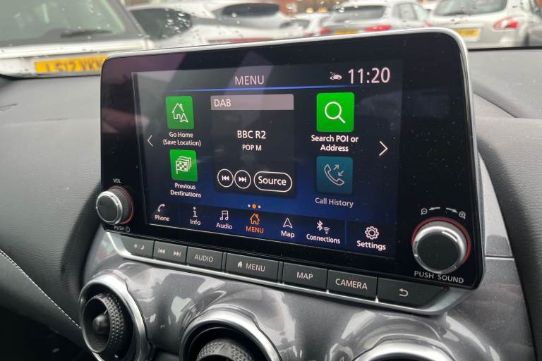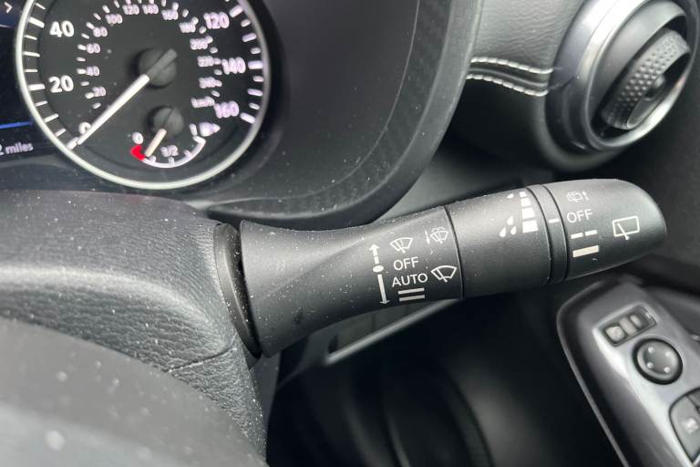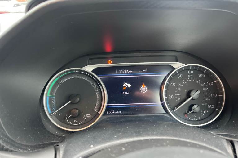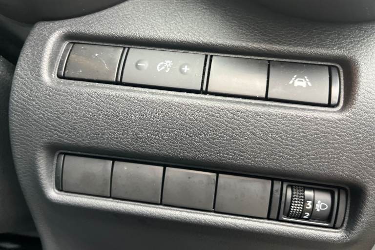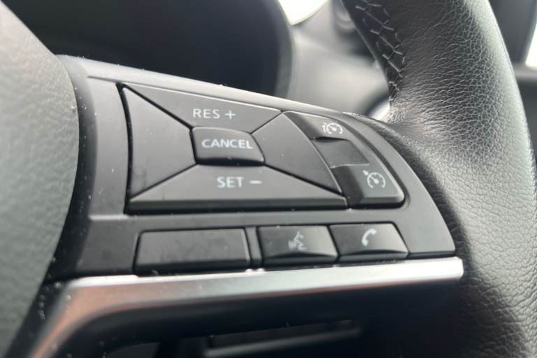 ..7'' full colour TFT screen combimeter, Apple CarPlay and Google Android auto, Drive modes select (Eco, normal and sport), e-Pedal step, Emergency and breakdown call, EV mode selector, Front parking sensor, Intelligent lane intervention, Lane departure warning system, Nissan connect 8'' touch screen entertainment system, Nissan connect nav with TomTom traffic, Nissan connect services and Wifi connection, Outside temperature sensor, Power Steering, Rear parking sensor, Traffic sign recognition, Trip computer, Voice recognition, Gasoline particulate filter, 6 speakers, Bluetooth system, USB, Aux-in and 12V socket, DAB Digital radio, Rear console USB port, Auto dimming interior rear view mirror, Auto headlights, Automatic hazard signal with emergency stop signal, Body colour bumpers, Body colour door handles, Electrically adjustable door mirrors with integrated indicators, Follow me home headlights, Front and rear electric window with one touch driver window, Heated and auto folding door mirrors, High beam assist, LED daytime running lights, LED headlamps, LED rear fog lamp, LED rear lamps, Rain sensor windscreen wipers, Rear privacy glass, Rear side wing doors, Rear wiper, Three blink turn signal, 3 height adjustable rear headrests, 3 seat bench in 2nd row, 60/40 split folding rear seat, Automatic climate control, Card holder on driver sunvisor, Cloth upholstery with black and metallic grey syntech leather inserts, Driver and passenger sliding and reclining seats, Driver side rear coat hanger, Driver/passenger sunvisors and vanity mirrors, Front and rear cabin lights, Front armrest, Front door pockets with bottle holders, Front head restraints, Front/rear passenger grab handles, Grey synthetic leather kneepad, Height adjustable driver's seat, Internal chrome door handles, Leather gearshift knob, Leather steering wheel, Luggage board, Luggage space lighting, Monoform sporty seats, Multifunction steering wheel, Rear door bottle holders, Single front passenger seat, Steering wheel mounted gearshift paddles, Telescopic steering wheel adjustment, Two cupholders in front centre console, Two rear isofix child seat anchorage points with top tether, Welcome light and console tray ambient lighting, ABS with EBD and brake assist, Active ride control, Active Trace Control, Driver and passenger airbags, Driver and passenger side airbags, Electric handbrake with auto hold function, Electronic Stability Programme (ESP), Front and rear curtain airbags, Height adjustable
