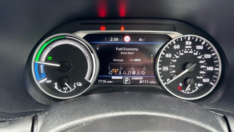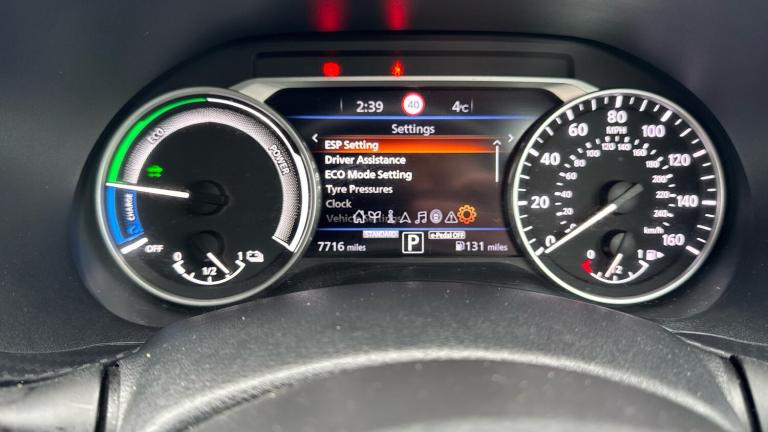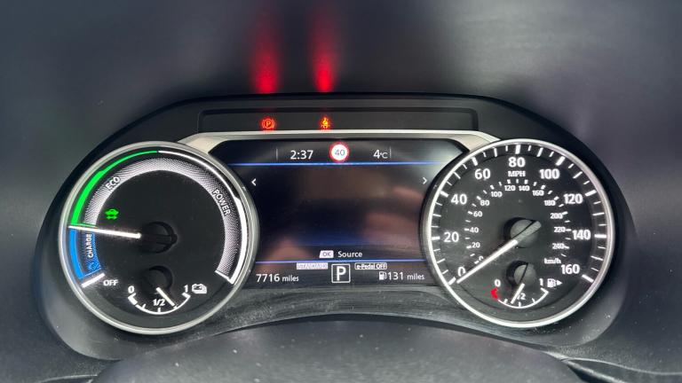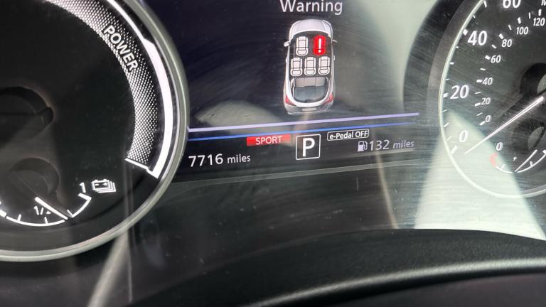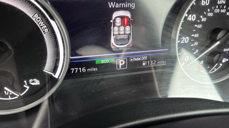 .Rear wiper, Rain sensor windscreen wipers, Rear privacy glass, Front and rear electric window with one touch driver window, Traction control, VDC Dynamic Vehicle Control, Hill start assist, Electronic Stability Programme (ESP), ABS with EBD and brake assist, Intelligent emergency braking with pedestrian and cyclist recognition, Electric handbrake with auto hold function, Ventilated rear brake discs, Voice recognition, Power Steering, Rear parking sensor, Lane departure warning system, Front parking sensor, Traffic sign recognition, Intelligent lane intervention, Drive modes select (Eco, normal and sport), EV mode selector, Trip computer, Outside temperature sensor, Apple CarPlay and Google Android auto, 7"" full colour TFT screen combimeter, Emergency and breakdown call, Nissan connect nav with TomTom traffic, Nissan connect services and Wifi connection, Nissan connect 8"" touch screen entertainment system, e-Pedal step