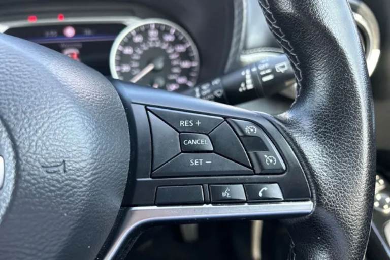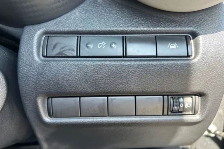 ..7'' full colour TFT screen combimeter, Apple CarPlay and Google Android auto, Cruise control + speed limiter, Drive modes select (Eco, normal and sport), e-Pedal step, Emergency and breakdown call, EV mode selector, Front parking sensor, Intelligent lane intervention, Lane departure warning system, Nissan connect 8'' touch screen entertainment system, Nissan connect nav with TomTom traffic, Nissan connect services and Wifi connection, Outside temperature sensor, Power Steering, Rear parking sensor, Traffic sign recognition, Trip computer, Voice recognition, Gasoline particulate filter, 6 speakers, Bluetooth system, USB, Aux-in and 12V socket, DAB Digital radio, Rear console USB port, Auto dimming interior rear view mirror, Auto headlights, Automatic hazard signal with emergency stop signal, Body colour bumpers, Body colour door handles, Electrically adjustable door mirrors with integrated indicators, Follow me home headlights, Front and rear electric window with one touch driver window, Heated and auto folding door mirrors, High beam assist, LED daytime running lights, LED front fog lights, LED headlamps, LED rear fog lamp, LED rear lamps, Pearl black door mirrors, Pearl black roof, Rain sensor windscreen wipers, Rear privacy glass, Rear side wing doors, Rear wiper, Shark fin roof antenna in Pearl Black, Textured stickers on door mirrors and roof, Three blink turn signal, 3 height adjustable rear headrests, 3 seat bench in 2nd row, 60/40 split folding rear seat, Automatic climate control, Card holder on driver sunvisor, Driver and passenger sliding and reclining seats, Driver side rear coat hanger, Driver/passenger sunvisors and vanity mirrors, Front and rear cabin lights, Front armrest, Front door pockets with bottle holders, Front head restraints, Front passenger isofix child seat anchorage point, Front/rear passenger grab handles, Grey synthetic leather kneepad, Height adjustable driver's seat, Internal chrome door handles, Leather gearshift knob, Leather steering wheel, Luggage board, Luggage space lighting, Monoform sporty seats, Multifunction steering wheel, Rear door bottle holders, Single front passenger seat, Steering wheel mounted gearshift paddles, Synthetic leather upholstery with light grey accents and two tone dashboard, Telescopic steering wheel adjustment, Two cupholders in front centre console, Two rear isofix child seat anchorage points with top tether, Welcome light and console tray ambient lighting, ABS with EBD and brake assist,