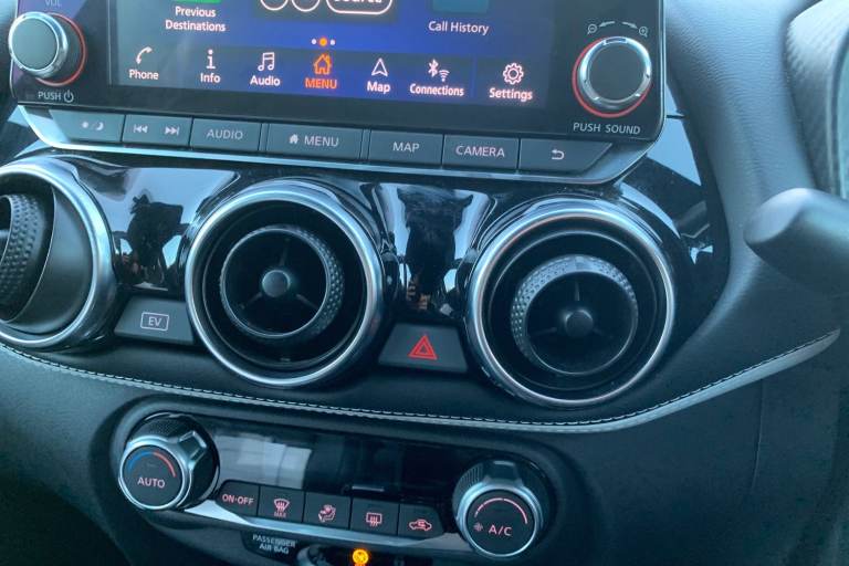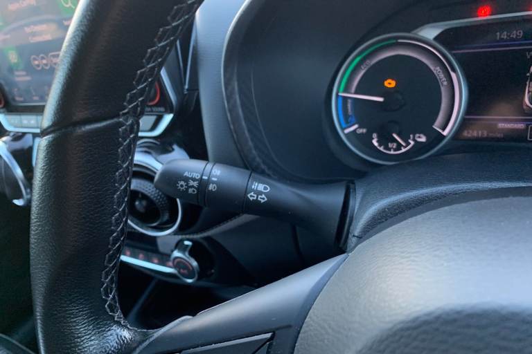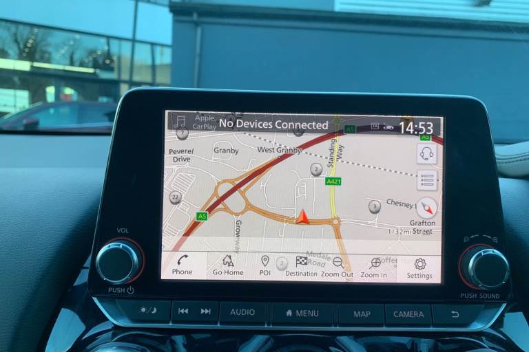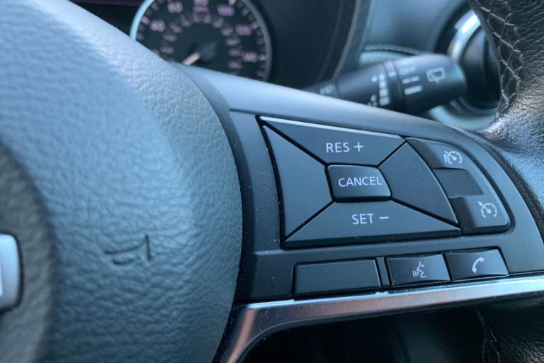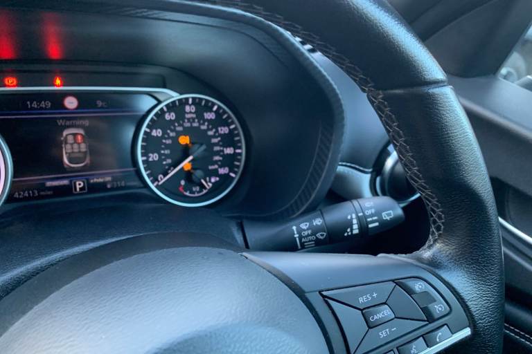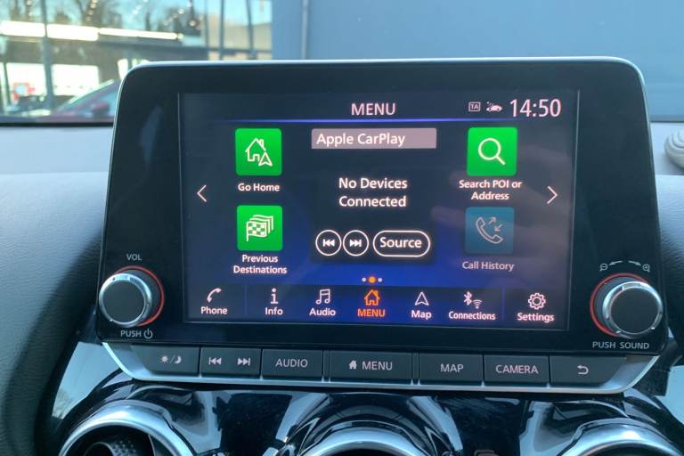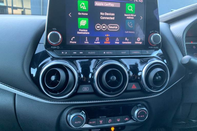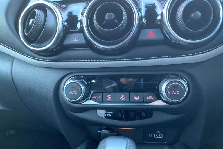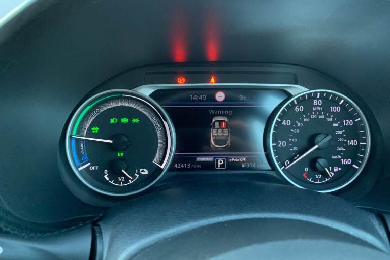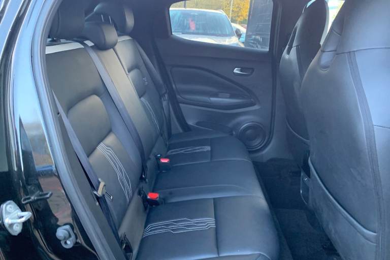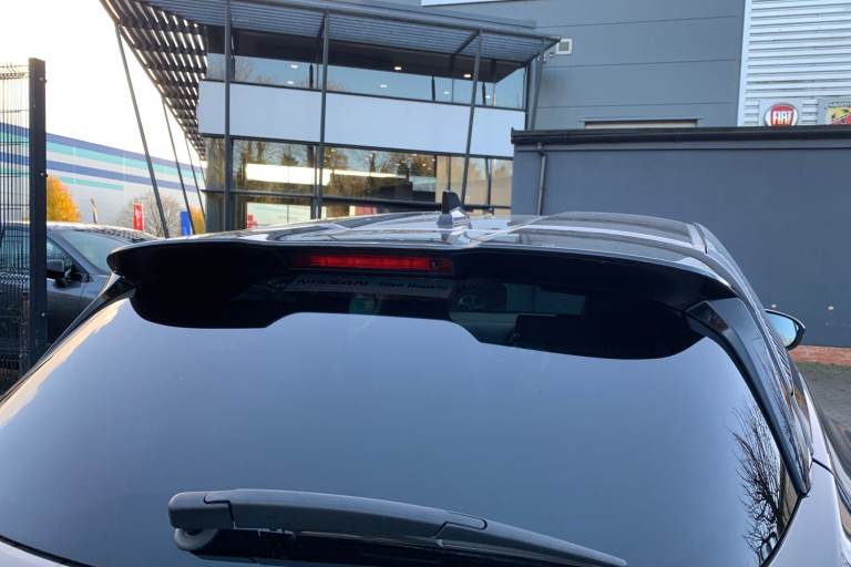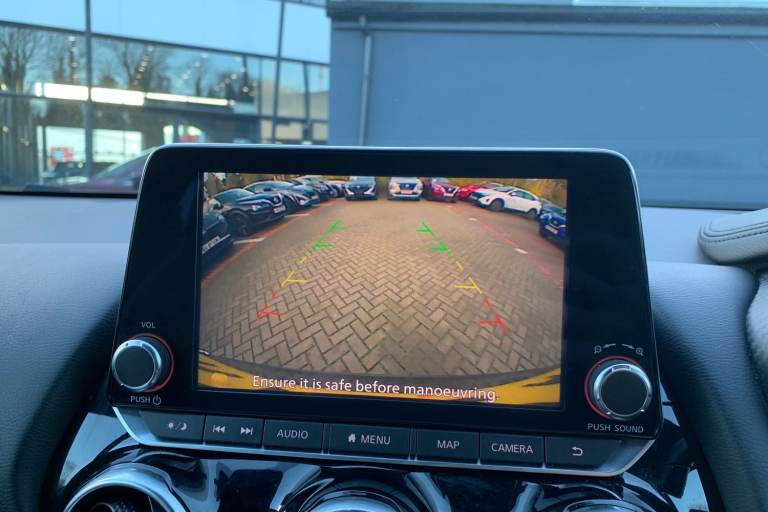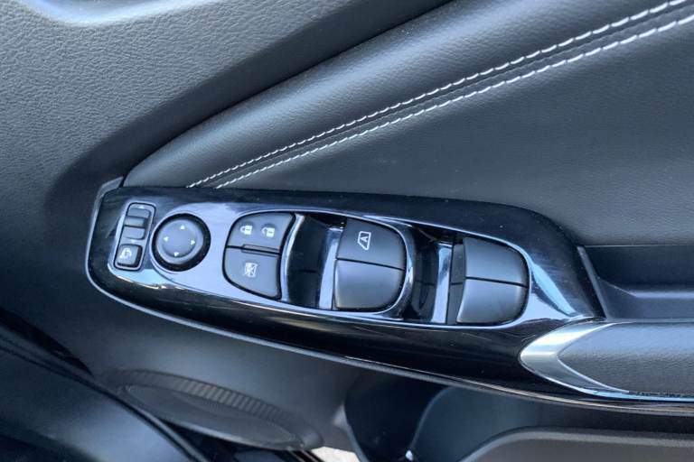 ..7'' full colour TFT screen combimeter, Apple CarPlay and Google Android auto, Cruise control + speed limiter, Drive modes select (Eco, normal and sport), e-Pedal step, Emergency and breakdown call, EV mode selector, Front parking sensor, Intelligent lane intervention, Lane departure warning system, Nissan connect 8'' touch screen entertainment system, Nissan connect nav with TomTom traffic, Nissan connect services and Wifi connection, Outside temperature sensor, Power Steering, Rear parking sensor, Traffic sign recognition, Trip computer, Voice recognition, Gasoline particulate filter, 6 speakers, Bluetooth system, USB, Aux-in and 12V socket, DAB Digital radio, Rear console USB port, Auto dimming interior rear view mirror, Auto headlights, Automatic hazard signal with emergency stop signal, Body colour bumpers, Body colour door handles, Electrically adjustable door mirrors with integrated indicators, Follow me home headlights, Front and rear electric window with one touch driver window, Heated and auto folding door mirrors, High beam assist, LED daytime running lights, LED front fog lights, LED headlamps, LED rear fog lamp, LED rear lamps, Pearl black door mirrors, Pearl black roof, Rain sensor windscreen wipers, Rear privacy glass, Rear side wing doors, Rear wiper, Shark fin roof antenna in Pearl Black, Textured stickers on door mirrors and roof, Three blink turn signal, 3 height adjustable rear headrests, 3 seat bench in 2nd row, 60/40 split folding rear seat, Automatic climate control, Card holder on driver sunvisor, Driver and passenger sliding and reclining seats, Driver side rear coat hanger, Driver/passenger sunvisors and vanity mirrors, Front and rear cabin lights, Front armrest, Front door pockets with bottle holders, Front head restraints, Front passenger isofix child seat anchorage point, Front/rear passenger grab handles, Grey synthetic leather kneepad, Height adjustable driver's seat, Internal chrome door handles, Leather gearshift knob, Leather steering wheel, Luggage board, Luggage space lighting, Monoform sporty seats, Multifunction steering wheel, Rear door bottle holders, Single front passenger seat, Steering wheel mounted gearshift paddles, Synthetic leather upholstery with light grey accents and two tone dashboard, Telescopic steering wheel adjustment, Two cupholders in front centre console, Two rear isofix child seat anchorage points with top tether, Welcome light and console tray ambient lighting, ABS with EBD and brake assist,