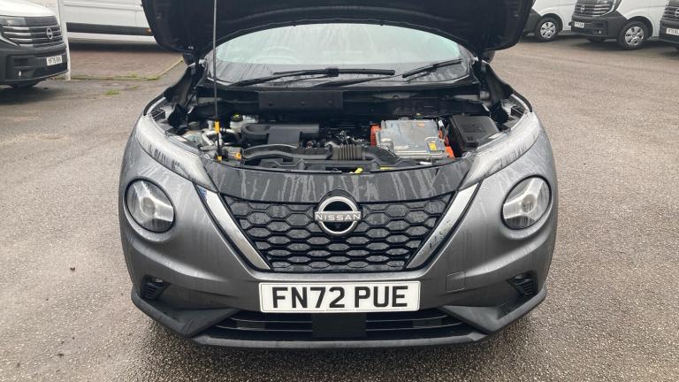 Introducing a striking Nissan Juke Hatchback 1.6 Hybrid Tekna 5dr Auto, finished in refined Gun Metallic Grey and now available at Ilkeston Vertu Nissan. With 32,180 miles recorded, this Hybrid Tekna model offers an ideal combination of efficiency, technology and distinctive style.The advanced 1.6 Hybrid powertrain delivers smooth, responsive performance while maximising fuel economy, making it perfectly suited to both town and motorway driving. As a Tekna specification, it provides an impressive level of comfort and equipment, including premium interior finishes, intelligent safety features and high-end technology designed to enhance every journey.This well-presented example has been carefully prepared and is ready to drive away from Ilkeston Vertu Nissan. If you are looking for a stylish, efficient and feature-packed compact SUV, this Nissan Juke Hybrid Tekna stands out as an excellent choice..Air Conditioning, Climate Control, Metallic Paint, Cruise Control, Satellite Navigation, Heated Seats, DAB Radio, Bluetooth, Parking Sensors, Stop Start, Heated Front Windscreen, Low Mileage, Full Service History, USB, Diamond Cut Alloy Wheels, Adaptive cruise, Keyless Entry-Push Button Start, Apple-Android Play, Rear Camera, Auto Lights, Electric Folding Mirrors, Xenon Head Lights, Lane Departure, Lane Keeping Assist, Pre Crash Prevention& Rain Sensors, Rear wiper, Rain sensor windscreen wipers, Rear privacy glass, Thermaclear heated windscreen, Front and rear electric window with one touch driver window, Traction control, VDC Dynamic Vehicle Control, Hill start assist, Electronic Stability Programme (ESP), ABS with EBD and brake assist, Intelligent emergency braking with pedestrian and cyclist recognition, Electric handbrake with auto hold function, Ventilated rear brake discs, Voice recognition, Power Steering, Rear parking sensor, Lane departure warning system