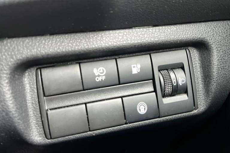 7 full colour TFT screen combimeter, 8 colour display with touchscreen, Apple car play/Android Auto, Blind spot intervention, Blind spot warning, E Pedal, eCall emergency call system, Electric power assisted steering, Intelligent Cruise control (ICC), Intelligent lane intervention, Lane departure warning system, Rear cross traffic alert, Rear view camera, Speed limiter, Trip computer, Aero roof spoiler, Automatic activation of hazard warning lights, Automatic rain sensing wipers, Body coloured door mirrors with integrated LED turn signals, Chrome door handles, Electric front/rear windows, Follow me home headlights, Front fog lights, Grey rear bumper finisher, Halogen headlamps, High beam assist, Illuminated charge port, Intelligent auto headlights, LED signature daytime running lights with directional indicator, LED signature rear lights, LED third brake light, Manual folding door mirrors, Rain sensor, Rear side wing doors, Rear wiper, 12V socket, 3 seat bench in 2nd row, 60/40 split folding rear seat, Automatic climate control with pollen filter and timer, Front centre console and armrest, Front head restraints, Front seatback pockets, Height adjustable driver seat, Isofix child seat anchor points, Manual adjust driver/passenger seats, Multifunction leather steering wheel, PTC (Positive Temp Co-efficent) heater, Rake and reach adjustable steering column, Rear assist grips, Rear head restraints, Single front passenger seat, Telescopic steering wheel adjustment, Woven fabric