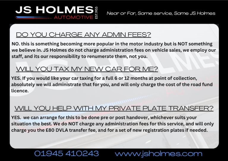 Every vehicle comes with a fresh MOT, servicing as required, 12 months of roadside assistance, and a minimum 6-month warranty with nationwide coverage for your peace of mind.