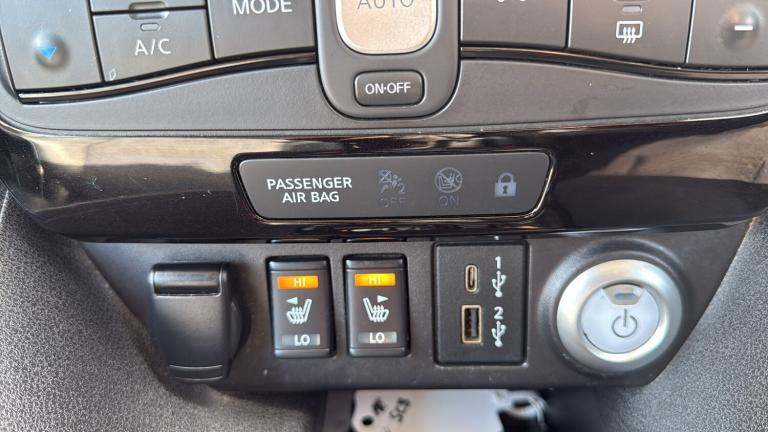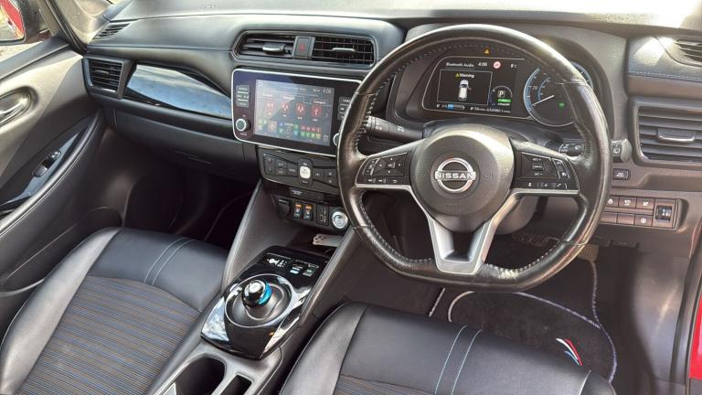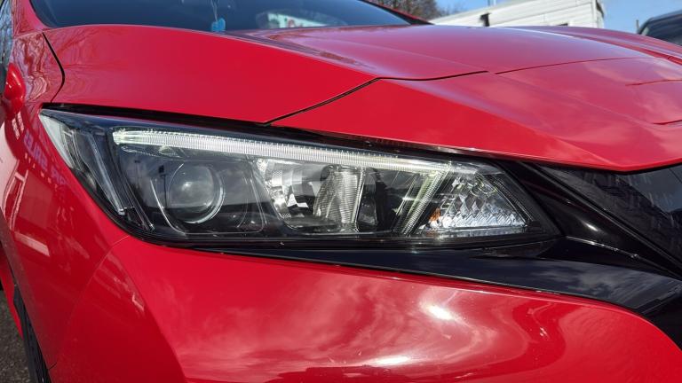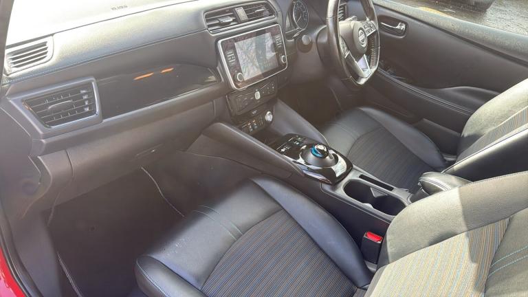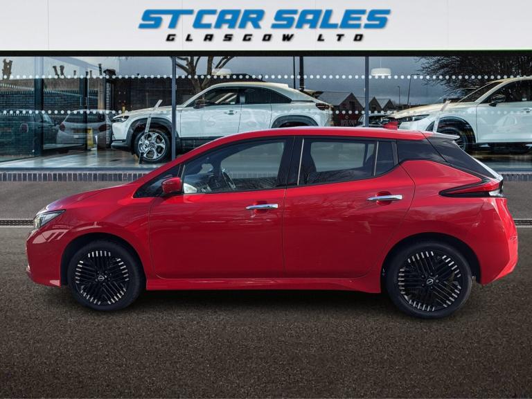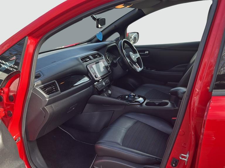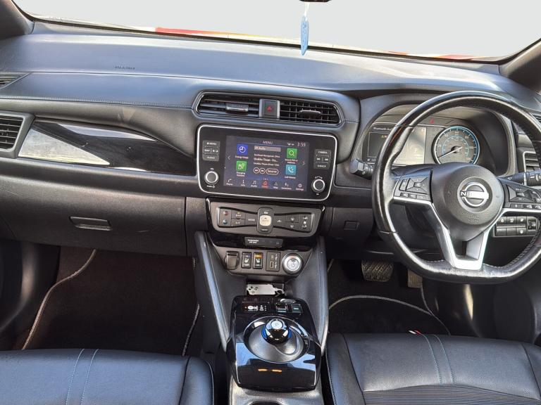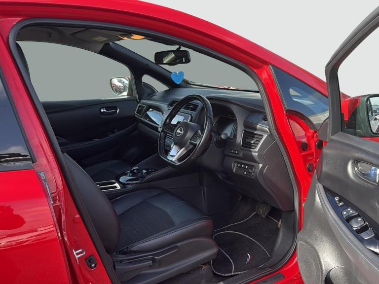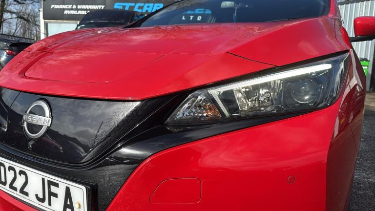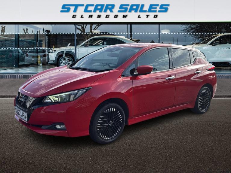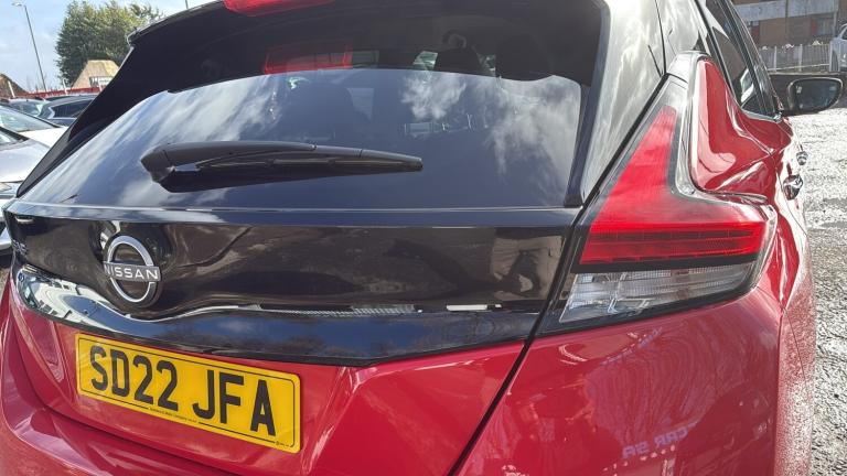 This 2022 Nissan LEAF 59kWh e+ N-Connecta Hatchback 5dr Electric Auto (217 ps) is a ULEZ compliant vehicle with 54,657 miles on the clock and a MOT that expires on 12/02/2027. This sleek hatchback is powered by an electric engine and comes with 5 seats and 5 doors, making it practical for everyday use. The striking 17in Alloy Wheels in Black Diamond Cut complement the body coloured door mirrors and chrome door handles, giving it a modern and stylish look. With features such as front electric windows and a charging port that can be remotely opened, this Nissan LEAF offers convenience and practicality for its driver and passengers alike. Features Include: , 17in alloy wheels - black diamond cut, body coloured door mirrors, charging port remote opening, door handles - chrome, front electric windows, integrated turn signals in mirrors, rear bumper finisher - grey, rear privacy glass, roof spoiler - aero, 50kw chademo quick charger, 6.6kw ac on board charger, 6m type 2 cable, blind spot intervention, e-pedal, electric power steering, energy-saving cabin heating system with heat pump, intelligent cruise control, lane departure warning, macpherson strut front suspension and twist beam axle rear suspension, speed limiter, tpms - tyre pressure monitoring system, 6 airbags, abs with ebd and brake assist, alarm - thatcham, auto hazard lights, esp - electronic stability programme, electrically driven intelligent braking system, hill start assist, isofix on rear, immobiliser, intelligent emergency braking with pedestrian recognition, intelligent key with start push button, intelligent lane intervention, intelligent ride control, intelligent trace control, rear cross traffic alert, rear door child locks, remote central locking with deadlocking, 7in combimeter, auto dimming rear view mirror, automatic climate control with pollen filter and timer, heat pack, illuminated charge port, leather steering wheel, multifunctional steering wheel, rain sensing windscreen wipers, tech pack, telescopic steering wheel adjustment, 8in colour display with touch screen, android auto and apple carplay, audio system with 6 speakers, bluetooth with audio streaming, digital radio - dab, ev connect telematics system, navigation system with voice control, nissanconnect services app, rear usb ports, shark fin antenna, usb port, front fog lights, headlights - follow me home function, headlights - high beam assist, intelligent auto headlights, led signature daytime running lights, led signature