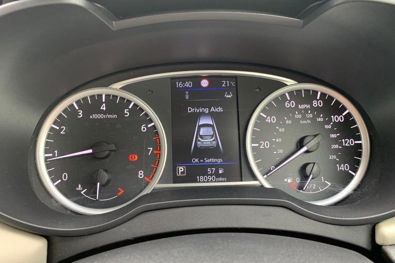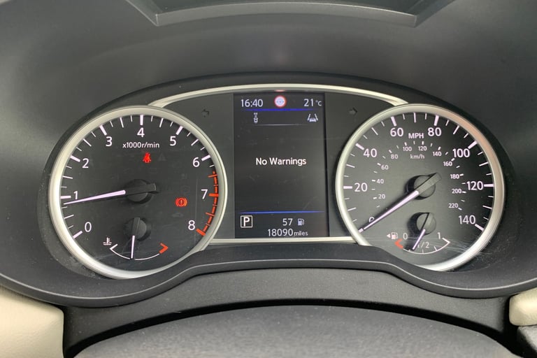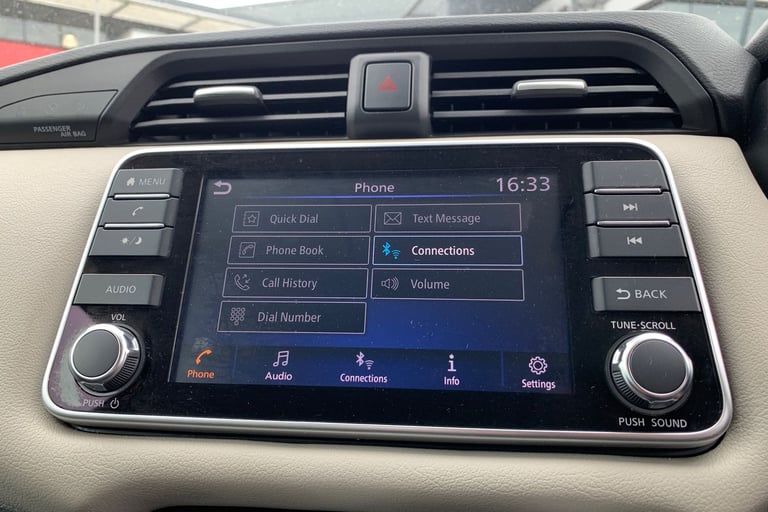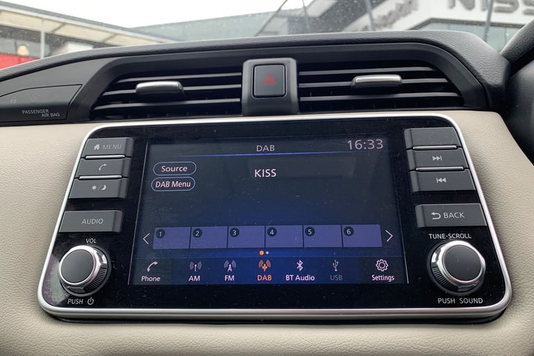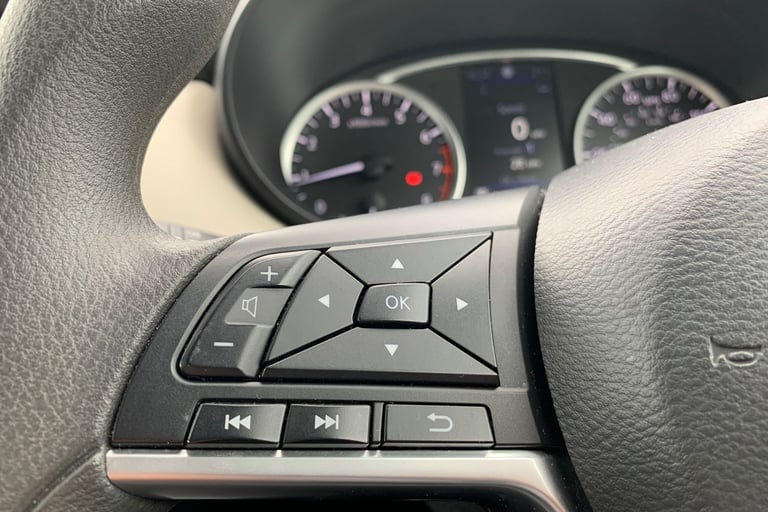 .Adjustable speed limiter, Advanced drive assist display 5'' TFT coloured screen, Bluetooth system, Cruise control, eCall emergency call system, Engine start button, Lane departure prevention, Lane departure warning system, Nissan connect display audio, Outside temperature gauge, Power assist steering, Smartphone integration with Apple CarPlay and Android auto, Stop/start system, Traffic sign recognition, Trip computer, 4 speakers, Audio system with MP3, DAB Digital radio, Steering wheel mounted audio controls, USB/iPod connection, 4 pocket halogen headlights with signature finisher, Antenna, Automatic activation of hazard warning lights, Automatic headlights, Body colour front door handles, Body coloured bumpers, Body coloured door mirrors, Concealed rear door handles, Door mirror integrated indicators, Electrically adjustable door mirrors, Front fog lights, High beam assist, High mounted stop lamp, Jacknife key type x1, LED signature daytime running lights, Power front windows, Rain sensor windscreen wipers, Rear roof spoiler, Rear side wing doors, Rear wiper with reverse link, Variable front intermittent wipers, 12V power point front, 2 height adjustable rear headrests, 2 x front and 1 x rear cup holders, 3 seat bench in 2nd row, 60/40 split folding rear seat, Boot compartment cover, Boot light, Casual cloth upholstery, Chrome interior door handles, Driver's seat manual height adjust, Driver/passenger sunvisors and vanity mirrors, Front and rear door pockets with bottle holders, Front console storage box, Gear shift indicator, Grey PVC front door pads, Height adjustable front headrests with satin sliver decoration, Illuminated electric window switch, Isofix front passenger and rear seat preparation, Manual air conditioning, Map reading lamp, Parcel shelf, Passenger seat back pocket, Reclining front seats, Satin silver accents on steering wheel, Satin silver air vents, Satin silver gearknob, Single front passenger seat, Soft knee pad with stitching, Soft touch upper IP with grey PC Insert, Tilt/telescopic adjustable steering wheel, ABS+EBD+Brake assist, Crash sensor, Driver/Front Passenger airbags, Front and rear curtain airbags, Front side airbags, Height adjustable front seatbelts with pre-tensioners and load limiters, Hill start assist, Intelligent emergency braking with pedestrian recognition, Passenger airbag deactivation system, Rear door child safety locks, Rear seatbelts with pre-tensioners and load limiters, Seatbelt warning, Three 3 point rear