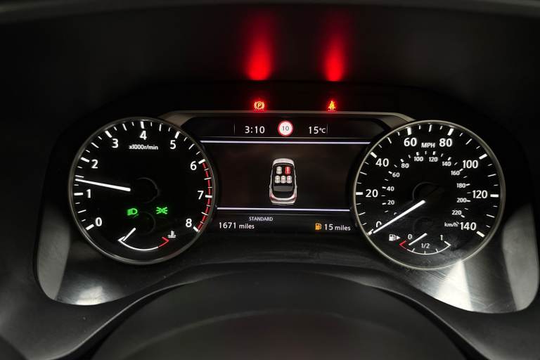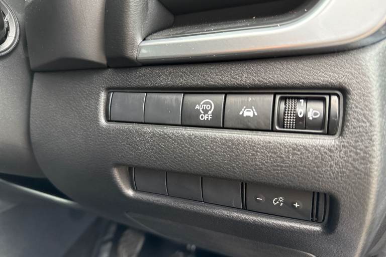 ..7'' High definition full colour TFT screen combimeter, Android auto/Apple CarPlay (Wired), Blind spot warning, Drive modes (sport, normal, eco), Electric speed sensitive power steering, Emergency and breakdown call, Idle stop/start system, Intelligent Cruise control (ICC), Intelligent driver alert system, Intelligent forward collision warning, Intelligent lane intervention, Lane departure prevention, Lane departure warning system, Maximum speed limiter, Nissan connect 8'' touchscreen infotainment system, Push button starter, Rear cross traffic alert, Rear parking sensors, Rear view camera, Traffic sign recognition with legal speed adjustment, Trip computer, 6 speakers, AM/FM audio system with DAB, Bluetooth audio streaming, Front USB connections (Type-A and Type-C), Auto dimming rear view mirror, Auto rear wiper when reversing, Automatic hazard signal with emergency stop signal, Body colour mirror caps, Body coloured door handles, Bodyside mouldings, Chrome side window finisher, Door handle with button, Electric auto folding door mirrors, Electrically adjustable and heated door mirrors with LED turn indicator, Follow me home headlights, High beam assist, Intelligent auto headlights, LED daytime running lights, LED Headlights, LED rear lights, One touch front and rear electric windows with remote opening and closing, Partially body coloured bumpers, Rear reversing light (bulb lighting), Rear roof spoiler, Rear side wing doors, Shark fin antenna, Splash free rain sensing wipers, Three blink turn signal, 12v power socket in dashboard and luggage, 2x Rear coat hooks, 3 bench rear seats in 2nd row, 3 rear headrests, 4 folding assist grip, 6-way manually adjustable driver's seat, 60/40 split folding rear seat bench, Centre console storage tray, Chrome interior door handles, Cloth monoform upholstery, Driver and front passenger sunvisors with illuminated vanity mirrors, Driver seat back pocket, Dual zone automatic climate control with pollen filter, Electrically adjustable lumbar support for driver, Front and rear door storage, Front centre console and armrest, Front cupholders x 2, Front door with bottle holders, Glovebox with light, Hard trunk cover, Height adjustable driver's seat, Height adjustable front headrests, Height adjustable passenger seat, Leather shift knob, Leather steering wheel, Luggage space lighting, Manually adjustable passenger (slide recline + lifter), Multifunction steering wheel, Passenger seat back pocket, Rear armrest with 2