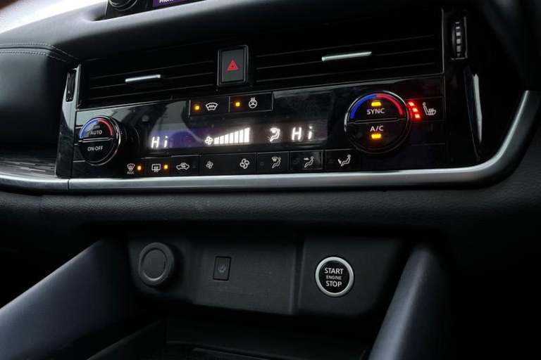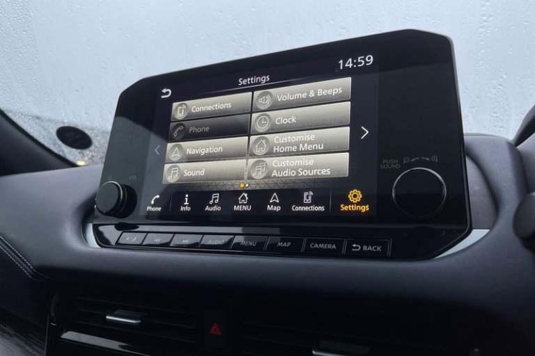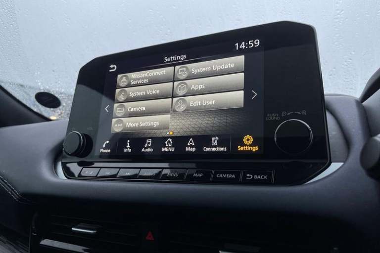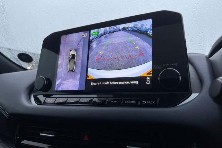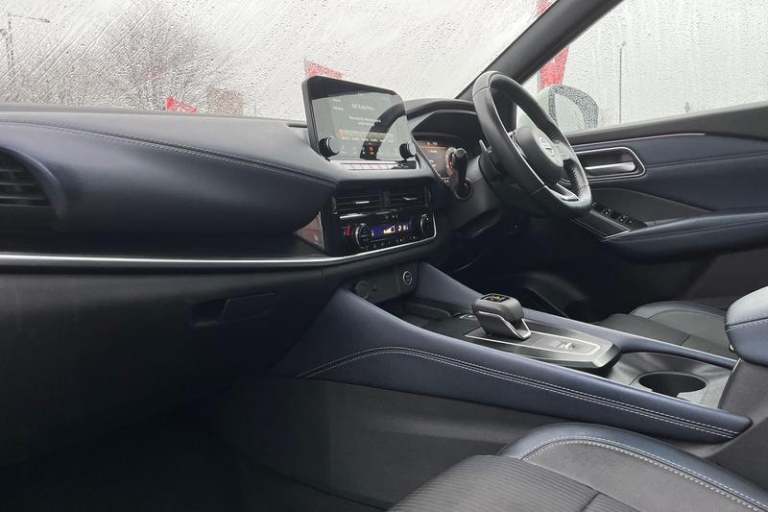Advanced windscreen head up display, Android auto/Apple CarPlay (Wired), Blind spot warning, Drive modes (sport, normal, eco), Electric speed sensitive power steering, Emergency and breakdown call, Front and rear parking sensors, Full Digital 12.3 TFT Digital Combimeter, Google maps services - search, weather, 3D maps and Google street view, Hands free power tailgate, Idle stop/start system, Intelligent around view monitor, Intelligent Cruise control (ICC), Intelligent driver alert system, Intelligent forward collision warning, Intelligent lane intervention, Lane departure prevention, Lane departure warning system, Lane keep assist, Moving object detection, Nissan connect 12.3 inch touchscreen infotainment system, Nissan connect navigation, ProPilot, Push button starter, Rear cross traffic alert, Rear view camera, Remote control services - door locks, lights, horn and car locator, Telematics - notifications and connectivity services, TomTom live traffic services, Traffic jam pilot, Traffic sign recognition with legal speed adjustment, Trip computer, Virtual personal assistant and firmware over the air capability, Wireless apple carplay, Wireless charging pad, Auto dimming rear view mirror, Auto rear wiper when reversing, Automatic hazard signal with emergency stop signal, Body colour mirror caps, Body coloured door handles, Bodyside mouldings, Chrome side window finisher, Door handle with button, Electric auto folding door mirrors, Electrically adjustable and heated door