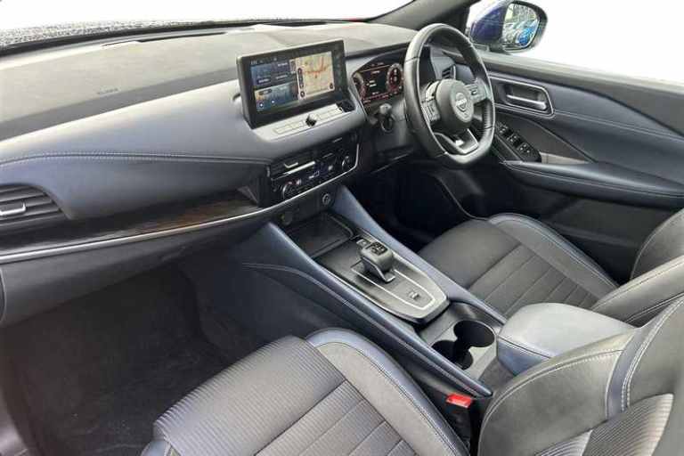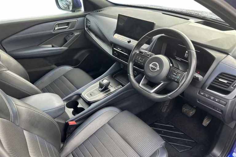 Brayley Coventry are delighted to offer this fantastic Automatic Qashqai Tekna DV72YVG Finished in stunning Ink Blue metallic paintwork and with only 21344 Miles Be quick to secure this near-new Nissan Qashqai Mild Hybrid Tekna Automatic, with a sumptuous half black leather interior and heated front seats for ultimate comfort all year round, this Qashqai is packed with premium features. ???? Top Specification Highlights: ???? 360° Colour Reversing Cameras – park with complete confidence ???? Nissan Connect Satellite Navigation – get where you need to go with ease. ???? Wireless Apple CarPlay & Android Auto – seamless smartphone integration ? Wireless Phone Charging – stay powered up on the go ???? Heated Front Windscreen & Mirrors – defrost in seconds ???? ProPILOT with Cruise Control & Speed Limiter – effortless motorway driving ????? Blind Spot Warning including heads up display– added safety in busy traffic ???? Electric Folding & Heated Door Mirrors ???? Exterior Features: ???? 19” Alloy Wheels – sporty, eye-catching design ????? Rear Privacy Glass With full panoramic glass sunroof– sleek and stylish ???? Finance & Peace of Mind: We offer competitive finance packages on all our Approved Used Vehicles, Please ask us about our PCP packages with free servicing and £250 deposit contributions and we can even arrange nationwide home delivery. This vehicle will come with the 12 Months Nissan Intelligent Choice Manufactures warranty with 12 months RAC cover for your peace of mind. ???? Call our friendly team today on [Phone number removed] to arrange a demonstration drive or request a live video tour of this stunning Qashqai ???? Dont miss out – reserve now for just £99.00! ????suited for both urban commuting and family adventures.