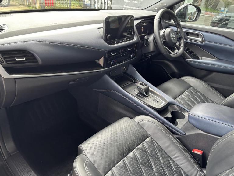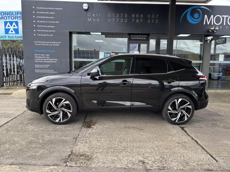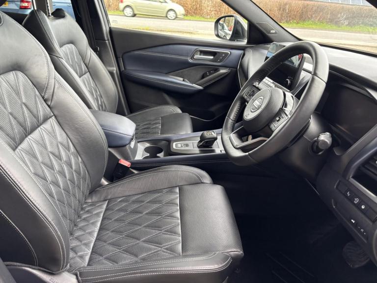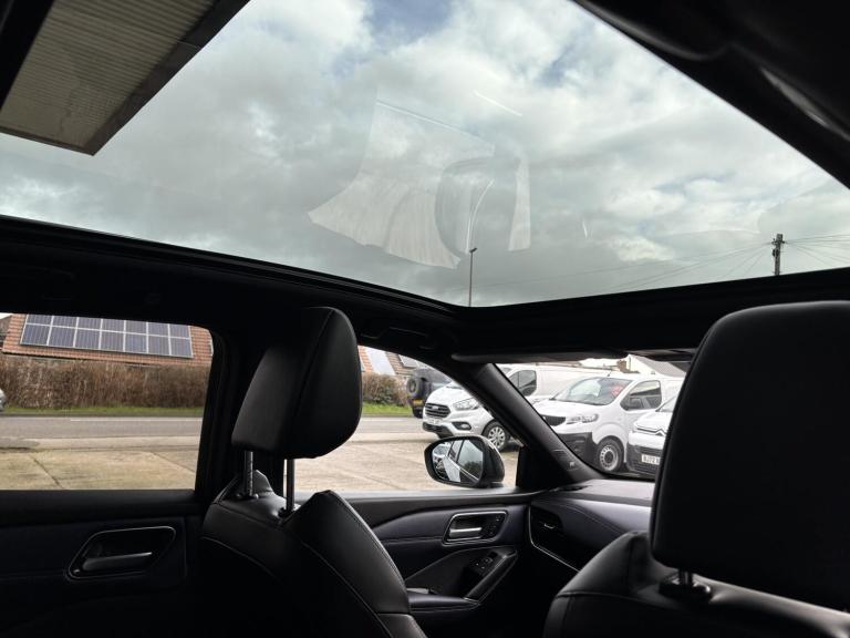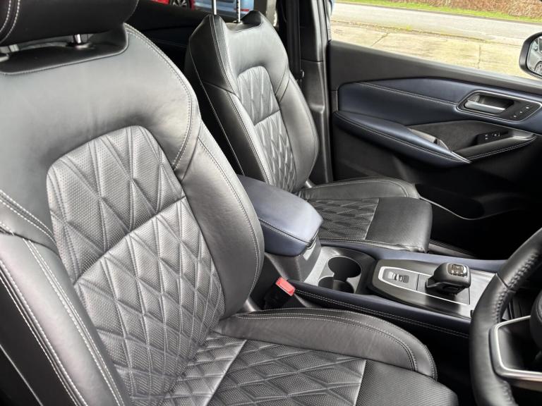 **New stock awaiting preparation** High specification automatic Hybrid Qashqai. One owner vehicle in great condition throughout. Economical car with low running cost. Last serviced 20/01/2026 and MOT 25/01/2027. Great specification including full leather interior, panoramic glass roof, satellite navigation, apple car play, parking cameras, power tailgate, premium sound system, wireless charging, DAB radio, Bluetooth, cruise control
