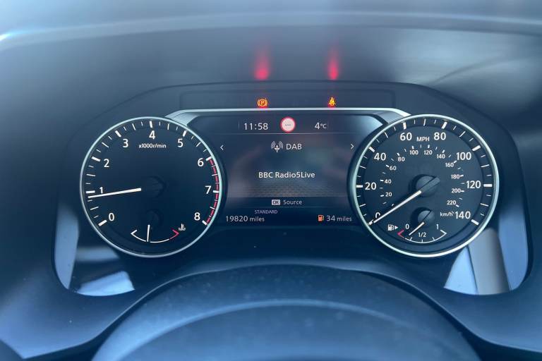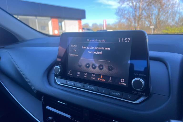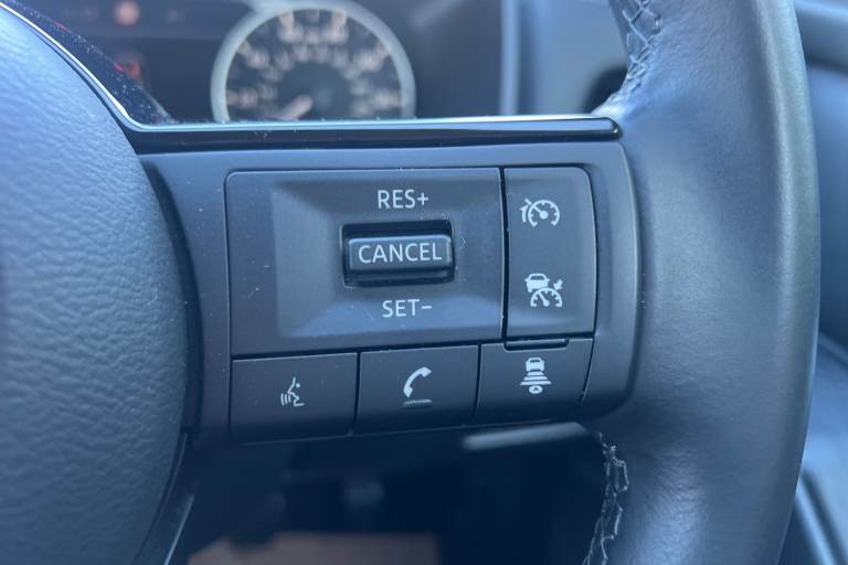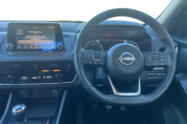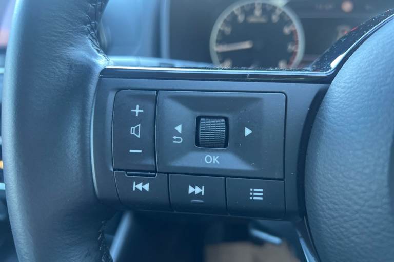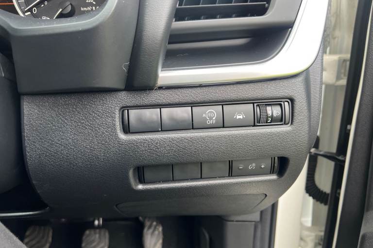 ..7'' High definition full colour TFT screen combimeter, Android auto/Apple CarPlay (Wired), Blind spot warning, Drive modes (sport, normal, eco), Electric speed sensitive power steering, Emergency and breakdown call, Idle stop/start system, Intelligent Cruise control (ICC), Intelligent driver alert system, Intelligent forward collision warning, Intelligent lane intervention, Lane departure prevention, Lane departure warning system, Maximum speed limiter, Nissan connect 8'' touchscreen infotainment system, Push button starter, Rear cross traffic alert, Rear parking sensors, Rear view camera, Traffic sign recognition with legal speed adjustment, Trip computer, 6 speakers, AM/FM audio system with DAB, Bluetooth audio streaming, Front USB connections (Type-A and Type-C), Auto dimming rear view mirror, Auto rear wiper when reversing, Automatic hazard signal with emergency stop signal, Body colour mirror caps, Body coloured door handles, Bodyside mouldings, Chrome side window finisher, Door handle with button, Electric auto folding door mirrors, Electrically adjustable and heated door mirrors with LED turn indicator, Follow me home headlights, High beam assist, Intelligent auto headlights, LED daytime running lights, LED Headlights, LED rear lights, One touch front and rear electric windows with remote opening and closing, Partially body coloured bumpers, Rear reversing light (bulb lighting), Rear roof spoiler, Rear side wing doors, Shark fin antenna, Splash free rain sensing wipers, Three blink turn signal, 12v power socket in dashboard and luggage, 2x Rear coat hooks, 3 bench rear seats in 2nd row, 3 rear headrests, 4 folding assist grip, 6-way manually adjustable driver's seat, 60/40 split folding rear seat bench, Centre console storage tray, Chrome interior door handles, Cloth monoform upholstery, Driver and front passenger sunvisors with illuminated vanity mirrors, Driver seat back pocket, Dual zone automatic climate control with pollen filter, Electrically adjustable lumbar support for driver, Front and rear door storage, Front centre console and armrest, Front cupholders x 2, Front door with bottle holders, Glovebox with light, Hard trunk cover, Height adjustable driver's seat, Height adjustable front headrests, Height adjustable passenger seat, Leather shift knob, Leather steering wheel, Luggage space lighting, Manually adjustable passenger (slide recline + lifter), Multifunction steering wheel, Passenger seat back pocket, Rear armrest with 2