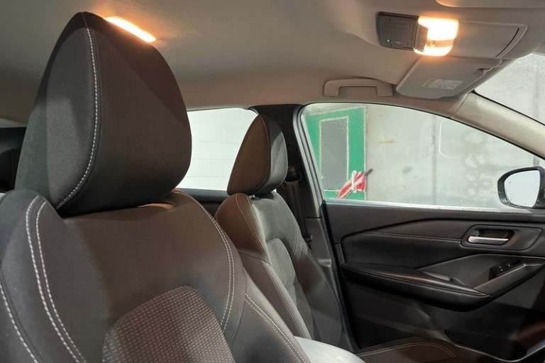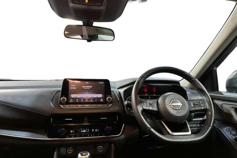 7 High definition full colour TFT screen combimeter, Android auto/Apple CarPlay (Wired), Blind spot warning, Drive modes (sport, normal, eco), Electric speed sensitive power steering, Emergency and breakdown call, Idle stop/start system, Intelligent Cruise control (ICC), Intelligent driver alert system, Intelligent forward collision warning, Intelligent lane intervention, Lane departure prevention, Lane departure warning system, Maximum speed limiter, Nissan connect 8 touchscreen infotainment system, Push button starter, Rear cross traffic alert, Rear parking sensors, Rear view camera, Traffic sign recognition with legal speed adjustment, Trip computer, Auto dimming rear view mirror, Auto rear wiper when reversing, Automatic hazard signal with emergency stop signal, Body colour mirror caps, Body coloured door handles, Bodyside mouldings, Chrome side window finisher, Door handle with button, Electric auto folding door mirrors, Electrically adjustable and heated door mirrors with LED turn indicator, Follow me home headlights, High beam assist, Intelligent auto headlights, LED 3rd brake light, LED daytime running lights, LED Headlights, LED rear lights, One touch front and rear electric windows with remote opening and closing, Partially body coloured bumpers, Rear reversing light (bulb lighting), Rear roof spoiler, Rear side wing doors, Shark fin antenna, Splash free rain sensing wipers, Three blink turn signal, 12v power socket in dashboard and luggage, 2x Rear coat hooks,