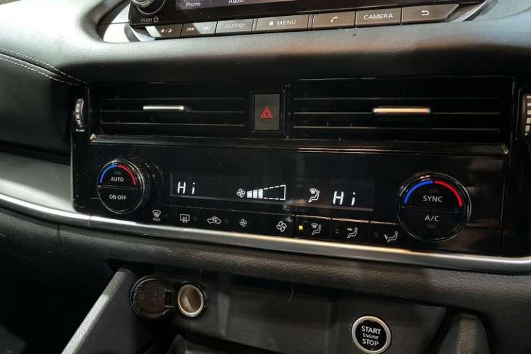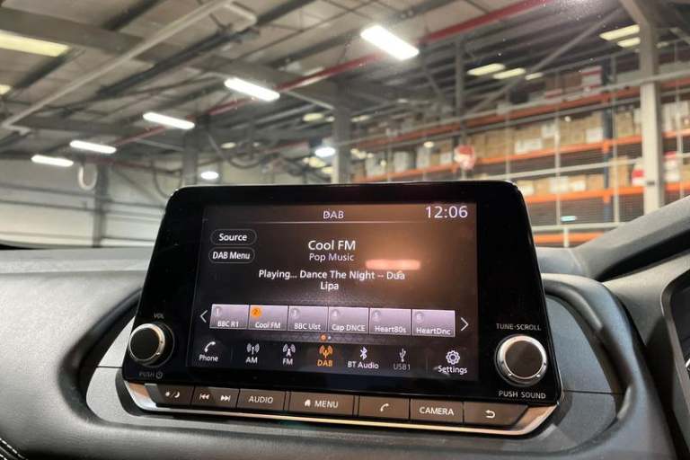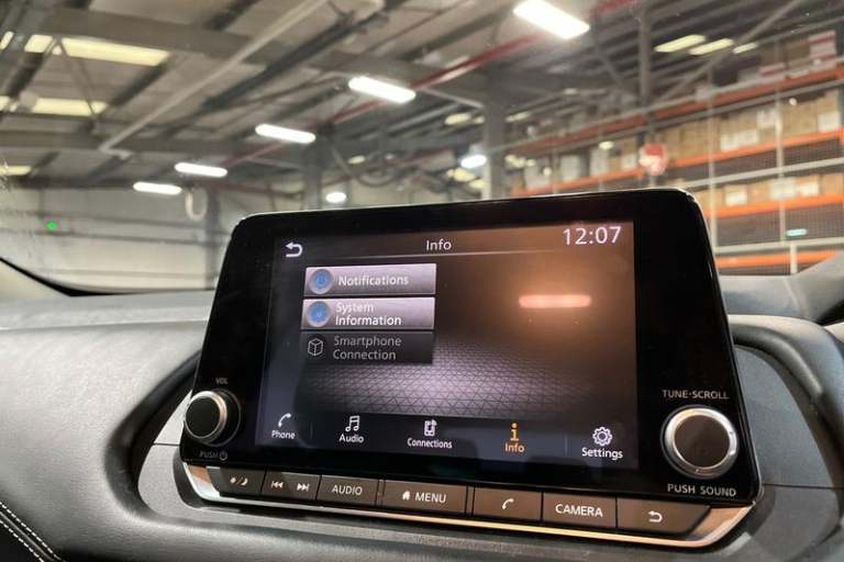 7 High definition full colour TFT screen combimeter, Android auto/Apple CarPlay (Wired), Blind spot warning, Drive modes (sport, normal, eco), Electric speed sensitive power steering, Emergency and breakdown call, Idle stop/start system, Intelligent Cruise control (ICC), Intelligent driver alert system, Intelligent forward collision warning, Intelligent lane intervention, Lane departure prevention, Lane departure warning system, Maximum speed limiter, Nissan connect 8 touchscreen infotainment system, Push button starter, Rear cross traffic alert, Rear parking sensors, Rear view camera, Traffic sign recognition with legal speed adjustment, Trip computer, Auto dimming rear view mirror, Auto rear wiper when reversing, Automatic hazard signal with emergency stop signal, Body colour mirror caps, Body coloured door handles, Bodyside mouldings, Chrome side window finisher, Door handle with button, Electric auto folding door mirrors, Electrically adjustable and heated door mirrors with LED turn indicator, Follow me home headlights, High beam assist, Intelligent auto headlights, LED 3rd brake light, LED daytime running lights, LED Headlights, LED rear lights, One touch front and rear electric windows with remote opening and closing, Partially body coloured bumpers, Rear reversing light (bulb lighting), Rear roof spoiler, Rear side wing doors, Shark fin antenna, Splash free rain sensing wipers, Three blink turn signal, 12v power socket in dashboard and luggage, 2x Rear coat hooks,