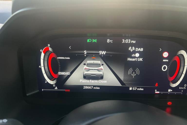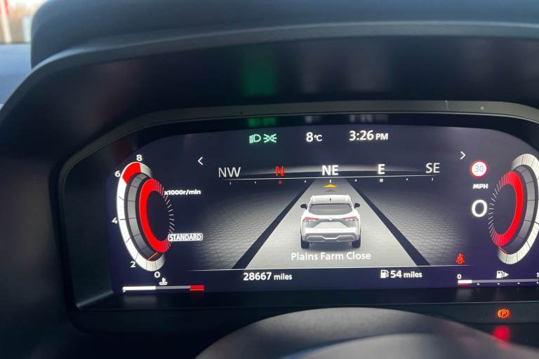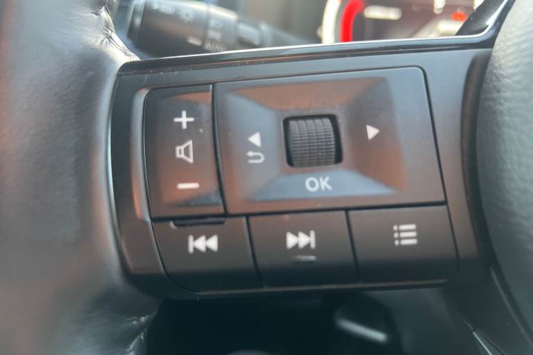 ..Advanced windscreen head up display, Android auto/Apple CarPlay (Wired), Blind spot warning, Drive assist, Drive modes (sport, normal, eco), Electric speed sensitive power steering, Emergency and breakdown call, Front and rear parking sensors, Full Digital 12.3'' TFT Digital Combimeter, Google maps services - search, weather, 3D maps and Google street view, Hands free power tailgate, Idle stop/start system, Intelligent around view monitor, Intelligent Cruise control (ICC), Intelligent driver alert system, Intelligent forward collision warning, Intelligent lane intervention, Lane departure prevention, Lane departure warning system, Lane keep assist, Moving object detection, Nissan connect 12.3 inch touchscreen infotainment system, Nissan connect navigation, Push button starter, Rear cross traffic alert, Rear view camera, Remote control services - door locks, lights, horn and car locator, Telematics - notifications and connectivity services, TomTom live traffic services, Traffic sign recognition with legal speed adjustment, Trip computer, Virtual personal assistant and firmware over the air capability, Wireless apple carplay, Wireless charging pad, 6 speakers, AM/FM audio system with DAB, Bluetooth audio streaming, Front USB connections (Type-A and Type-C), Rear USB charging only ports (Type-A and Type-C), Auto dimming rear view mirror, Auto rear wiper when reversing, Automatic hazard signal with emergency stop signal, Body colour mirror caps, Body coloured door handles, Bodyside mouldings, Chrome side window finisher, Door handle with button, Electric auto folding door mirrors, Electrically adjustable and heated door mirrors with LED turn indicator, Follow me home headlights, Front and rear LED turning signals, Headlights auto levelling system, Intelligent auto headlights, LED daytime running lights, LED headlights with adaptive driving beam, LED rear lights, One touch front and rear electric windows with remote opening and closing, Partially body coloured bumpers, Privacy glass, Rear bumper with graphite insert, Rear reversing light (bulb lighting), Rear roof spoiler, Rear side wing doors, Rear styling plate, Shark fin antenna, Splash free rain sensing wipers, Super UV and infrared cut glass, Thermaclear heated windscreen, Three blink turn signal, 12v power socket in dashboard and luggage, 2x Rear coat hooks, 3 bench rear seats in 2nd row, 3 rear headrests, 4 folding assist grip, 6 Luggage hooks - 4 on floor, 2 on side, 60/40 split folding rear seat