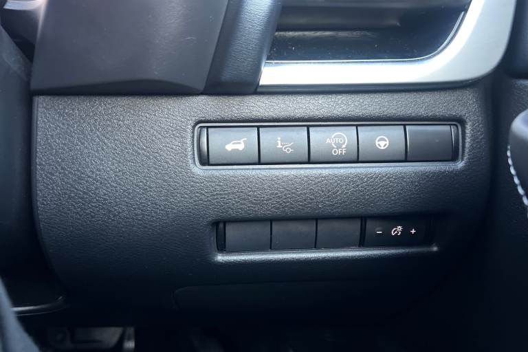 ..Advanced windscreen head up display, Android auto/Apple CarPlay (Wired), Blind spot warning, Drive assist, Drive modes (sport, normal, eco), Electric speed sensitive power steering, Emergency and breakdown call, Front and rear parking sensors, Full Digital 12.3'' TFT Digital Combimeter, Google maps services - search, weather, 3D maps and Google street view, Hands free power tailgate, Idle stop/start system, Intelligent around view monitor, Intelligent Cruise control (ICC), Intelligent driver alert system, Intelligent forward collision warning, Intelligent lane intervention, Lane departure prevention, Lane departure warning system, Lane keep assist, Moving object detection, Nissan connect 12.3 inch touchscreen infotainment system, Nissan connect navigation, Push button starter, Rear cross traffic alert, Rear view camera, Remote control services - door locks, lights, horn and car locator, Telematics - notifications and connectivity services, TomTom live traffic services, Traffic sign recognition with legal speed adjustment, Trip computer, Virtual personal assistant and firmware over the air capability, Wireless apple carplay, Wireless charging pad, 6 speakers, AM/FM audio system with DAB, Bluetooth audio streaming, Front USB connections (Type-A and Type-C), Rear USB charging only ports (Type-A and Type-C), Auto dimming rear view mirror, Auto rear wiper when reversing, Automatic hazard signal with emergency stop signal, Body colour mirror caps, Body coloured door handles, Bodyside mouldings, Chrome side window finisher, Door handle with button, Electric auto folding door mirrors, Electrically adjustable and heated door mirrors with LED turn indicator, Follow me home headlights, Front and rear LED turning signals, Headlights auto levelling system, Intelligent auto headlights, LED daytime running lights, LED headlights with adaptive driving beam, LED rear lights, One touch front and rear electric windows with remote opening and closing, Partially body coloured bumpers, Privacy glass, Rear bumper with graphite insert, Rear reversing light (bulb lighting), Rear roof spoiler, Rear side wing doors, Rear styling plate, Shark fin antenna, Splash free rain sensing wipers, Super UV and infrared cut glass, Thermaclear heated windscreen, Three blink turn signal, 12v power socket in dashboard and luggage, 2x Rear coat hooks, 3 bench rear seats in 2nd row, 3 rear headrests, 4 folding assist grip, 6 Luggage hooks - 4 on floor, 2 on side, 60/40 split folding rear seat