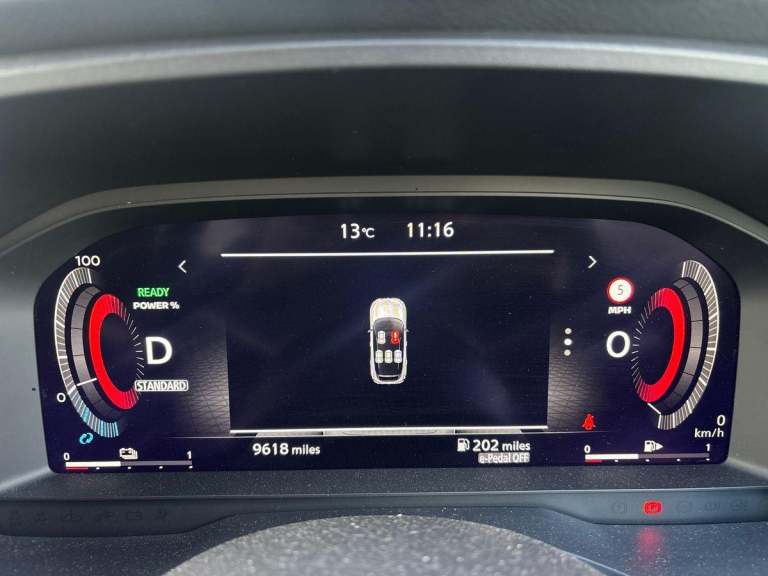 ..Android auto/Apple CarPlay (Wired), Blind spot warning, Drive modes (sport, normal, eco), Electric speed sensitive power steering, Emergency and breakdown call, Front and rear parking sensors, Full Digital 12.3'' TFT Digital Combimeter, Google maps services - search, weather, 3D maps and Google street view, Idle stop/start system, Intelligent around view monitor, Intelligent Cruise control (ICC), Intelligent driver alert system, Intelligent forward collision warning, Intelligent lane intervention, Lane departure prevention, Lane departure warning system, Maximum speed limiter, Moving object detection, Nissan connect 12.3 inch touchscreen infotainment system, Nissan connect navigation, Push button starter, Rear cross traffic alert, Rear view camera, Remote control services - door locks, lights, horn and car locator, Telematics - notifications and connectivity services, TomTom live traffic services, Traffic sign recognition with legal speed adjustment, Trip computer, Virtual personal assistant and firmware over the air capability, Wireless apple carplay, 6 speakers, AM/FM audio system with DAB, Bluetooth audio streaming, Front USB connections (Type-A and Type-C), Rear USB charging only ports (Type-A and Type-C), Auto dimming rear view mirror, Auto rear wiper when reversing, Automatic hazard signal with emergency stop signal, Body colour mirror caps, Body coloured door handles, Bodyside mouldings, Chrome side window finisher, Door handle with button, e-POWER badging, Electric auto folding door mirrors, Electrically adjustable and heated door mirrors with LED turn indicator, Follow me home headlights, High beam assist, Intelligent auto headlights, LED daytime running lights, LED Headlights, LED rear lights, One touch front and rear electric windows with remote opening and closing, Partially body coloured bumpers, Privacy glass, Rear bumper with graphite insert, Rear reversing light (bulb lighting), Rear roof spoiler, Rear side wing doors, Rear styling plate, Shark fin antenna, Splash free rain sensing wipers, Super UV and infrared cut glass, Three blink turn signal, 12v power socket in dashboard and luggage, 2x Rear coat hooks, 3 bench rear seats in 2nd row, 3 rear headrests, 4 folding assist grip, 6-way manually adjustable driver's seat, 60/40 split folding rear seat bench, Ambient lighting around centre console, Centre console storage tray, Chrome interior door handles, Cloth monoform upholstery, Driver and front passenger sunvisors with illuminated