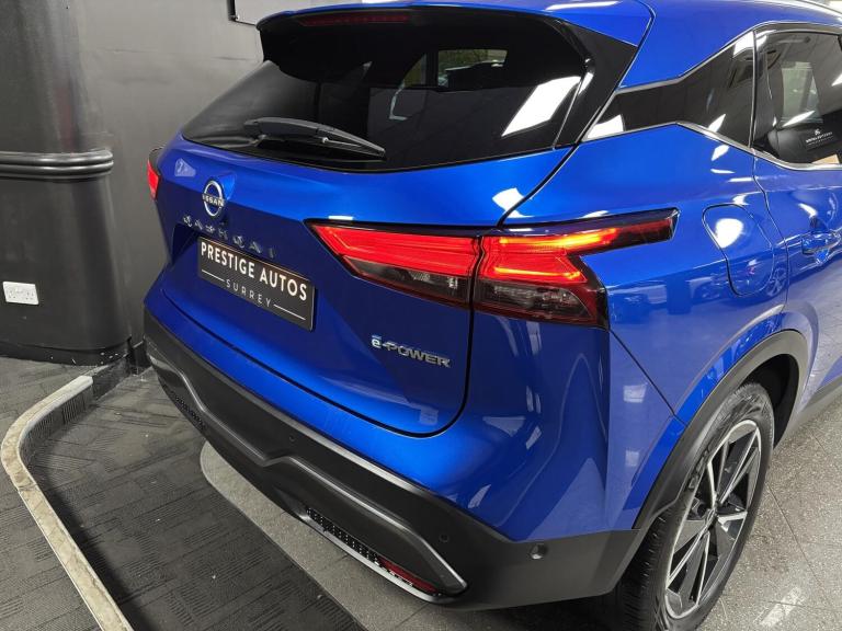 Here at Prestige Autos Surrey, we are very proud to offer this exceptional 2022 Nissan Qashqai 1.5 h e-POWER Tekna in a very desirable Magnetic Blue with a Pearl Black Roof. A remarkable blend of style, performance, and efficiency. This striking blue SUV, with its sleek lines and modern design, is not only visually appealing but also embodies the latest advancements in automotive technology. This Nissan has only 2 owners from new and comes with a full main dealership service history. This car also comes with a range of features, including: Panoramic glass roof, Head-up display, 360° around view camera, Full Nissan service history, ProPILOT assist, Adaptive cruise control, Lane keep assist, Blind spot monitoring, Front and rear parking sensors, Heated front seats, Heated steering wheel, Electric driver’s seat, Keyless entry and start, Power tailgate, Satellite navigation, Apple CarPlay, Android Auto, Digital driver display, Privacy glass, LED headlights, 19in alloy wheels and many more! Call our showroom for a full video tour of this vehicle. This vehicle is further enhanced by optional factory extras, including a panoramic glass roof with an electric sunblind and a wireless phone charging pad integrated into the centre console. 6 MONTHS WARRANTY, 12 MONTHS MOT, FULL SERVICE HISTORY, COMPETITIVE FINANCE AVAILABLE, PART EXCHANGE WELCOME. Prestige Autos Surrey Are an AA authorised Dealership which means we are approved by The Chartered Trading Standards Institute. A family run local Business holding 30 years of Industry leading knowledge and expertise, based in Thames Ditton Surrey, KT7 0TA. A local business with a trusted reputation, all of our vehicles are handpicked and test driven prior to purchase and undergo further multi-point safety checks prior to sale to ensure full customer satisfaction. Please feel free to visit our state of the art showroom (previous Jaguar Land Rover Main Dealership) where you will experience first class customer service and a fantastic selection of cars to suit all budgets and lifestyles.