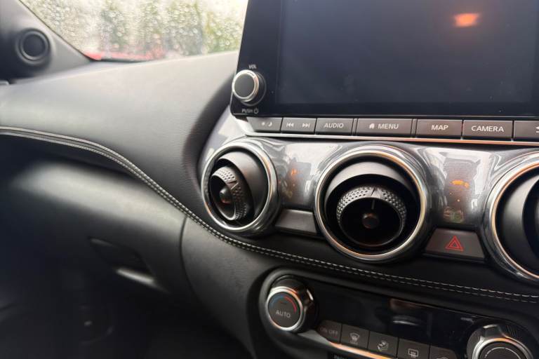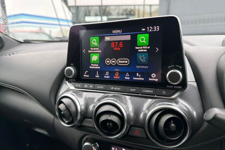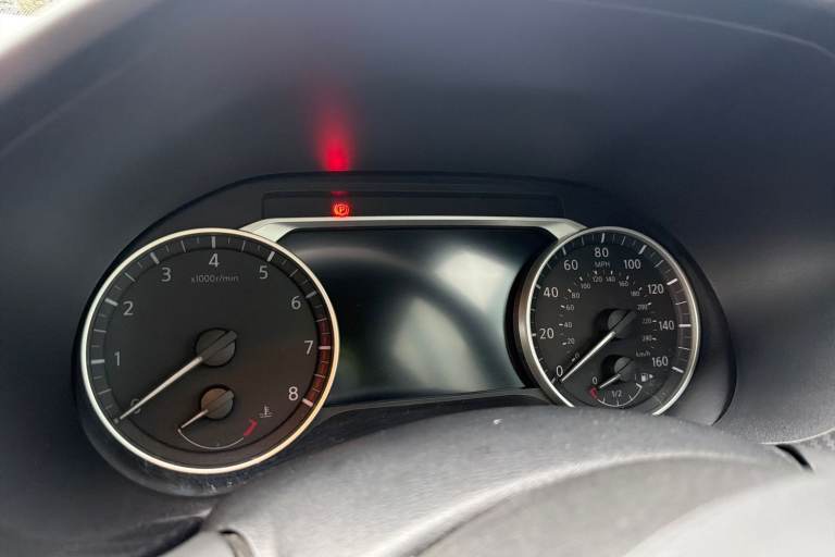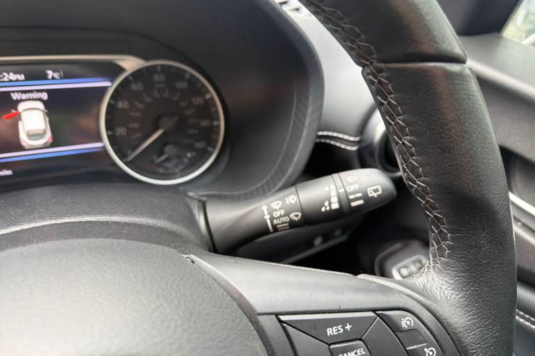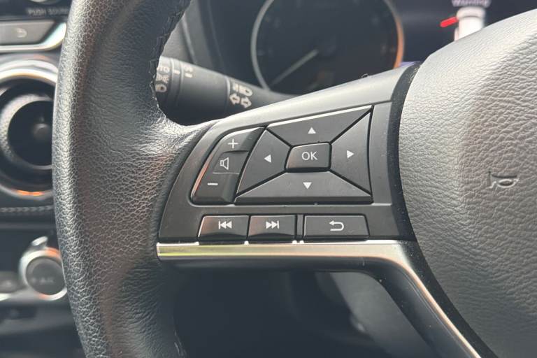 ..7'' full colour TFT screen combimeter, Apple CarPlay and Google Android auto, Drive modes select (Eco, normal and sport), Emergency and breakdown call, Front parking sensor, Idle start/stop system, Intelligent lane intervention, Lane departure warning system, Nissan connect 8'' touch screen entertainment system, Nissan connect nav with TomTom traffic, Nissan connect services and Wifi connection, Outside temperature sensor, Power Steering, Rear parking sensor, Traffic sign recognition, Trip computer, Voice recognition, Gasoline particulate filter, 6 speakers, Bluetooth system, USB, Aux-in and 12V socket, DAB Digital radio, Rear console USB port, Auto dimming interior rear view mirror, Auto headlights, Automatic hazard signal with emergency stop signal, Body colour bumpers, Body colour door handles, Electrically adjustable door mirrors with integrated indicators, Follow me home headlights, Front and rear electric window with one touch driver window, Heated and auto folding door mirrors, High beam assist, LED daytime running lights, LED headlamps, LED rear fog lamp, LED rear lamps, Rain sensor windscreen wipers, Rear privacy glass, Rear side wing doors, Rear wiper, Three blink turn signal, 3 height adjustable rear headrests, 3 seat bench in 2nd row, 60/40 split folding rear seat, Automatic climate control, Card holder on driver sunvisor, Cloth upholstery with black and metallic grey syntech leather inserts, Driver and passenger sliding and reclining seats, Driver side rear coat hanger, Driver/passenger sunvisors and vanity mirrors, Front and rear cabin lights, Front armrest, Front door pockets with bottle holders, Front head restraints, Front/rear passenger grab handles, Grey synthetic leather kneepad, Height adjustable driver's seat, Internal chrome door handles, Leather gearshift knob, Leather steering wheel, Luggage board, Luggage space lighting, Monoform sporty seats, Multifunction steering wheel, Rear door bottle holders, Single front passenger seat, Telescopic steering wheel adjustment, Two cupholders in front centre console, Two rear isofix child seat anchorage points with top tether, Welcome light and console tray ambient lighting, ABS with EBD and brake assist, Active ride control, Active Trace Control, Driver and passenger airbags, Driver and passenger side airbags, Electric handbrake with auto hold function, Electronic Stability Programme (ESP), Front and rear curtain airbags, Height adjustable seatbelts, Hill start assist, Intelligent emergency