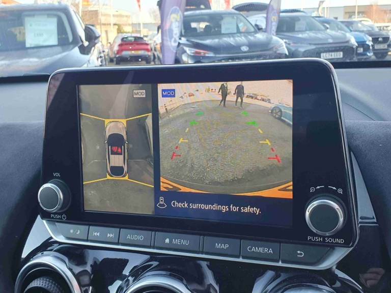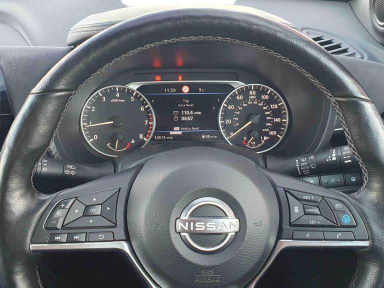 ..7'' full colour TFT screen combimeter, Apple CarPlay and Google Android auto, Drive modes select (Eco, normal and sport), Emergency and breakdown call, Front parking sensor, Idle start/stop system, Intelligent lane intervention, Lane departure warning system, Nissan connect 8'' touch screen entertainment system, Nissan connect nav with TomTom traffic, Nissan connect services and Wifi connection, Outside temperature sensor, Power Steering, Rear parking sensor, Traffic sign recognition, Trip computer, Voice recognition, Gasoline particulate filter, 10 Bose speakers 6 speakers and 2 headrest speakers for driver/passenger seats, Bluetooth system, USB, Aux-in and 12V socket, Bose personal sound stage control, DAB Digital radio, Rear console USB port, Auto dimming interior rear view mirror, Auto headlights, Automatic hazard signal with emergency stop signal, Body colour bumpers, Body colour door handles, Electrically adjustable door mirrors with integrated indicators, Follow me home headlights, Front and rear electric window with one touch driver window, Heated and auto folding door mirrors, High beam assist, LED daytime running lights, LED front fog lights, LED headlamps, LED rear fog lamp, LED rear lamps, Rain sensor windscreen wipers, Rear privacy glass, Rear side wing doors, Rear wiper, Satin silver front bumper finisher, Thermaclear heated windscreen, Three blink turn signal, 3 height adjustable rear headrests, 3 seat bench in 2nd row, 60/40 split folding rear seat, Automatic climate control, Card holder on driver sunvisor, Door ambient lighting, Driver and passenger sliding and reclining seats, Driver seat back pocket, Driver side rear coat hanger, Driver/passenger sunvisors and vanity mirrors, Front and rear cabin lights, Front armrest, Front door pockets with bottle holders, Front head restraints, Front passenger isofix child seat anchorage point, Front/rear passenger grab handles, Gear console ambient circle lighting, Grey synthetic leather kneepad, Heated front seats, Height adjustable driver's seat, Height adjustable passenger seat, Internal chrome door handles, Leather gearshift knob, Leather steering wheel, Luggage board, Luggage space lighting, Monoform sporty seats, Multifunction steering wheel, Passenger seat back pocket, Rear door bottle holders, Single front passenger seat, Telescopic steering wheel adjustment, Two cupholders in front centre console, Two rear isofix child seat anchorage points with top tether, Welcome light and console tray