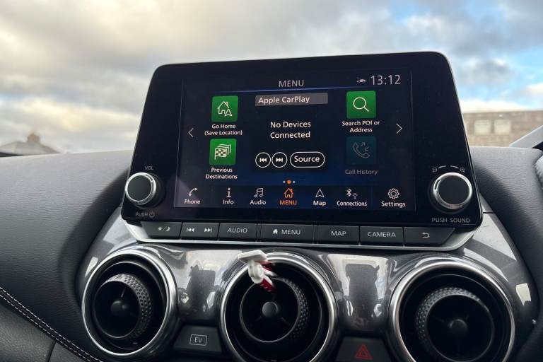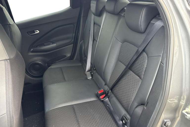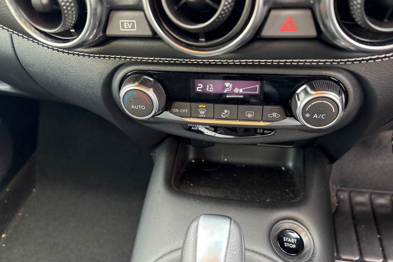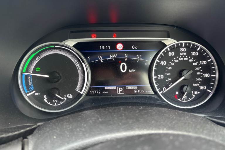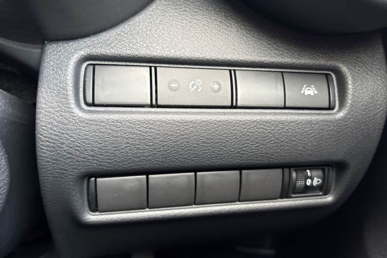 ..7'' full colour TFT screen combimeter, Apple CarPlay and Google Android auto, Drive modes select (Eco, normal and sport), e-Pedal step, Emergency and breakdown call, EV mode selector, Front parking sensor, Intelligent lane intervention, Lane departure warning system, Nissan connect 8'' touch screen entertainment system, Nissan connect nav with TomTom traffic, Nissan connect services and Wifi connection, Outside temperature sensor, Power Steering, Rear parking sensor, Traffic sign recognition, Trip computer, Voice recognition, Gasoline particulate filter, 6 speakers, Bluetooth system, USB, Aux-in and 12V socket, DAB Digital radio, Rear console USB port, Auto dimming interior rear view mirror, Auto headlights, Automatic hazard signal with emergency stop signal, Body colour bumpers, Body colour door handles, Electrically adjustable door mirrors with integrated indicators, Follow me home headlights, Front and rear electric window with one touch driver window, Heated and auto folding door mirrors, High beam assist, LED daytime running lights, LED headlamps, LED rear fog lamp, LED rear lamps, Rain sensor windscreen wipers, Rear privacy glass, Rear side wing doors, Rear wiper, Three blink turn signal, 3 height adjustable rear headrests, 3 seat bench in 2nd row, 60/40 split folding rear seat, Automatic climate control, Card holder on driver sunvisor, Cloth upholstery with black and metallic grey syntech leather inserts, Driver and passenger sliding and reclining seats, Driver side rear coat hanger, Driver/passenger sunvisors and vanity mirrors, Front and rear cabin lights, Front armrest, Front door pockets with bottle holders, Front head restraints, Front/rear passenger grab handles, Grey synthetic leather kneepad, Height adjustable driver's seat, Internal chrome door handles, Leather gearshift knob, Leather steering wheel, Luggage board, Luggage space lighting, Monoform sporty seats, Multifunction steering wheel, Rear door bottle holders, Single front passenger seat, Steering wheel mounted gearshift paddles, Telescopic steering wheel adjustment, Two cupholders in front centre console, Two rear isofix child seat anchorage points with top tether, Welcome light and console tray ambient lighting, ABS with EBD and brake assist, Active ride control, Active Trace Control, Driver and passenger airbags, Driver and passenger side airbags, Electric handbrake with auto hold function, Electronic Stability Programme (ESP), Front and rear curtain airbags, Height adjustable