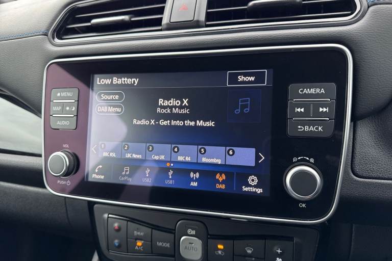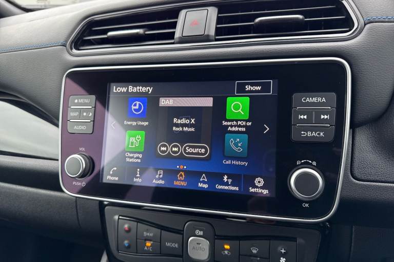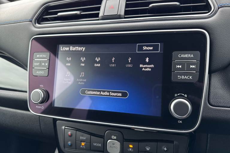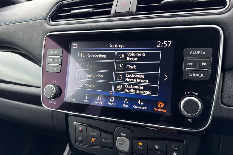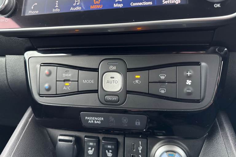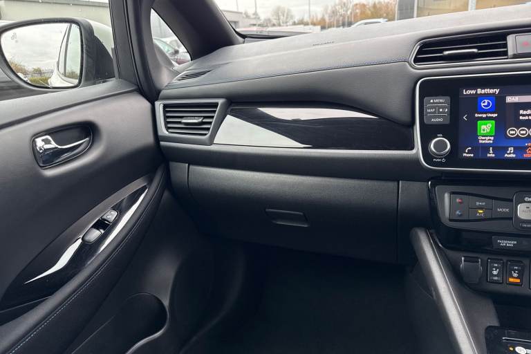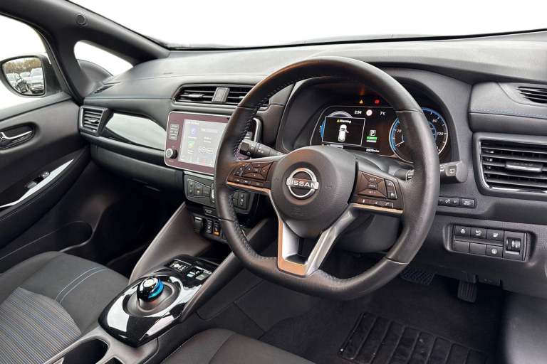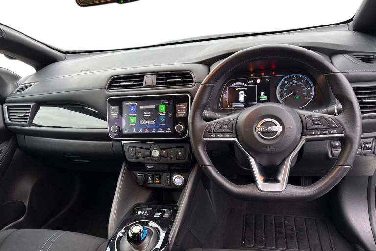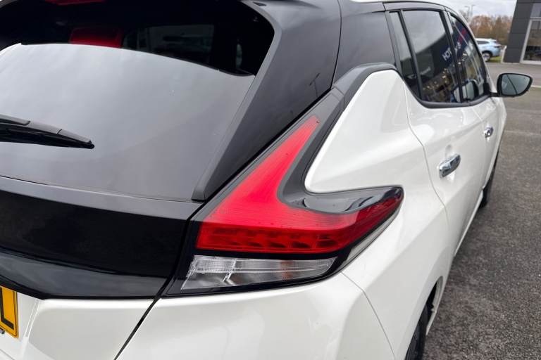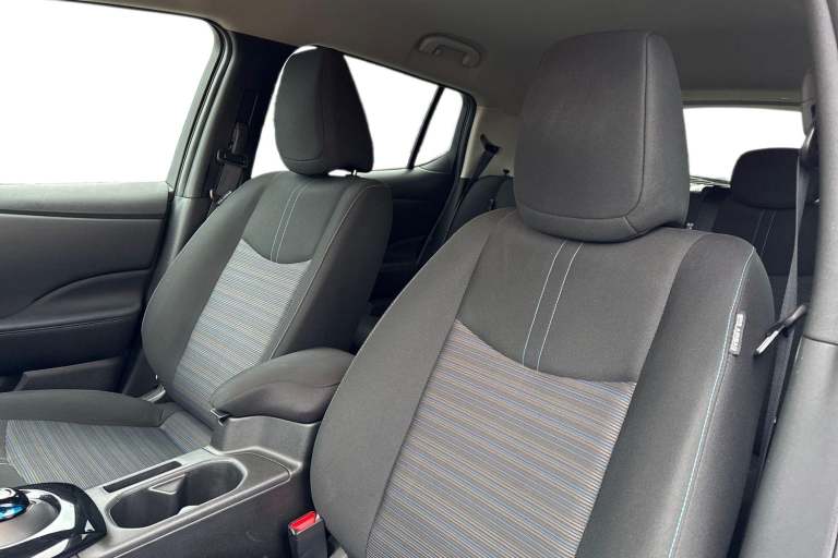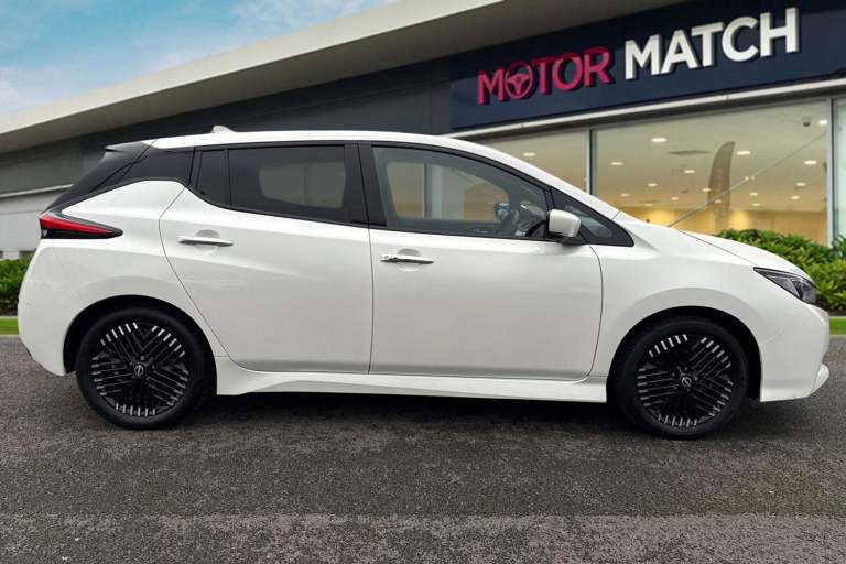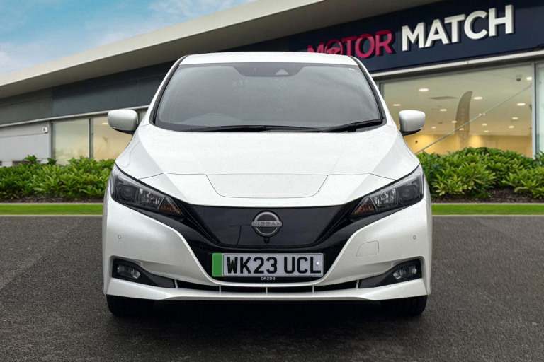 Now available from Motor Match Chester, with only 8k miles on the clock! Boasting a 39kWh battery, the Nissan Leaf can get an all-electric range of up to 168-miles*, giving you plenty of power for daily driving. Ultra rapid charging is supported, with a kW charger offering a 10-80% charge in as little as minutes! Charging can also be scheduled to take place at off-peak times for even better running costs! This Nissan Leaf N-Connecta comes finished in the sleek Storm White metallic paint, which looks fantastic paired with the 17in diamond-cut alloys. Inside, youll find comfy cloth upholstery, with manual seat adjustment provided. The Leaf is plenty spacious throughout, offering lots of legroom for passengers and a roomy boot for its size! The front seats and outer rear seats are heated, and dual-zone climate control is provided to keep passengers comfortable! This car offers an ace media system, offering access to DAB radio, Bluetooth interface and USB connectivity, so you have plenty of choice when it comes to music! Youve also got the reliable satellite navigation system on board, along with the ability to connect smartphones to use Apple CarPlay and Android Auto, so you can access your phones apps and maps on the go! The Leaf boasts some useful safety features too, including cruise control and lane keep assist which come in handy for motorway drives. Parking this vehicle couldnt be easier with the help of the front and rear parking sensors and 360-degree camera! ...