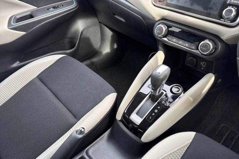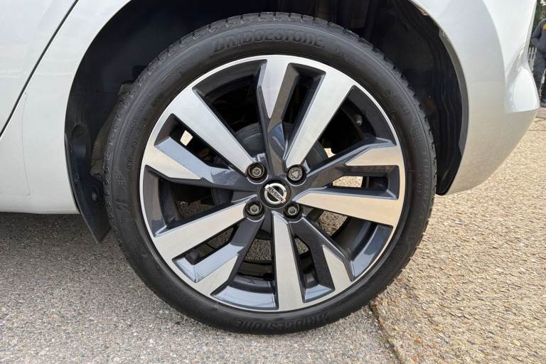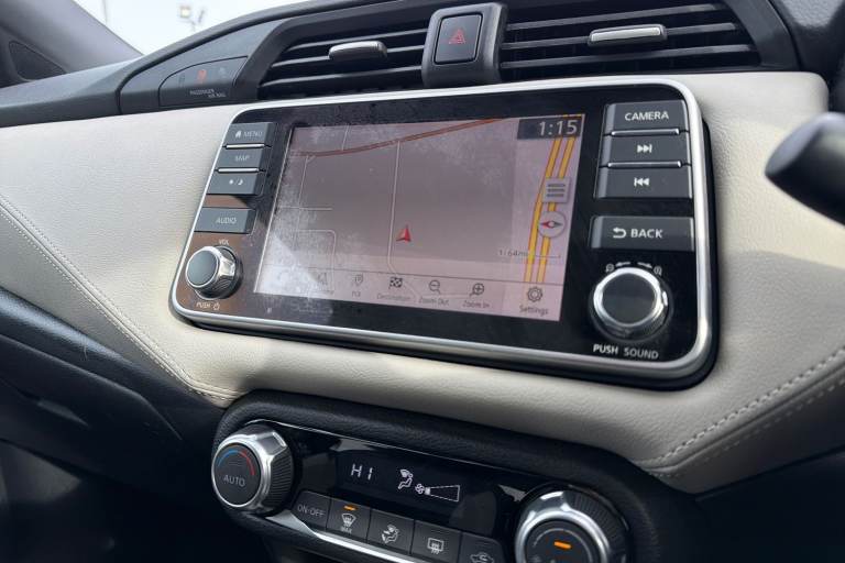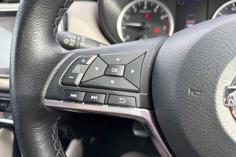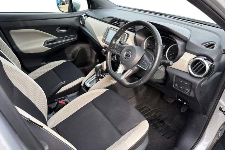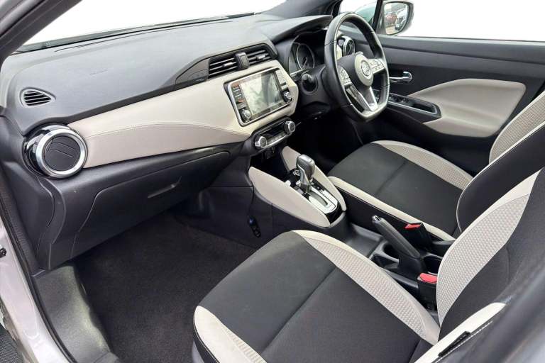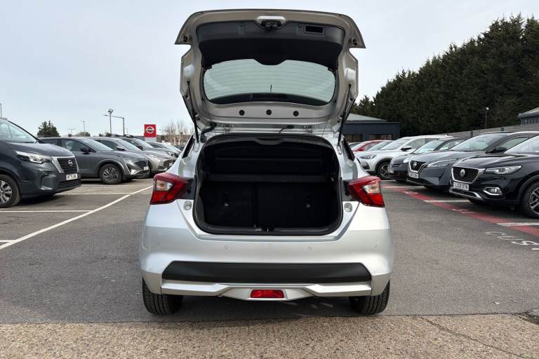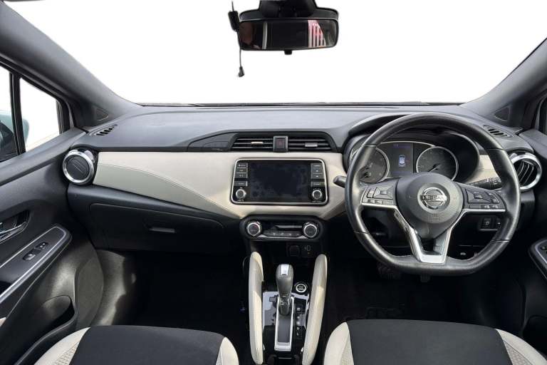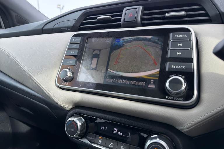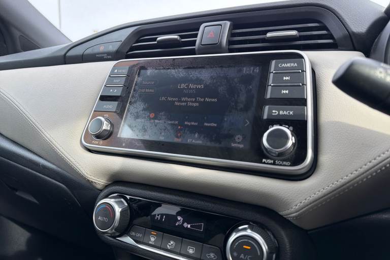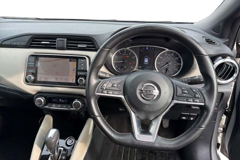 ..360 degree around view monitor, Adjustable speed limiter, Advanced drive assist display 5'' TFT coloured screen, Bluetooth system, Cruise control, eCall emergency call system, Engine start button, Lane departure prevention, Lane departure warning system, Nissan Connect touchscreen navigation and Entertainment system, Outside temperature gauge, Power assist steering, Rear parking sensors, Rear view camera, Smartphone integration with Apple CarPlay and Android auto, Stop/start system, TomTom services, Traffic sign recognition, Trip computer, Audio system with MP3, DAB Digital radio, Steering wheel mounted audio controls, USB/iPod connection, Antenna, Auto dimming rear view mirror, Automatic activation of hazard warning lights, Automatic headlights, Body colour front door handles, Body coloured bumpers, Body coloured door mirrors, Concealed rear door handles, Electric folding door mirrors, Front and rear electric windows, Front fog lights, Heated door mirrors, High beam assist, High mounted stop lamp, Jacknife key type x1, LED Headlights, LED signature daytime running lights, LED turn indicators on door mirrors, Rain sensor windscreen wipers, Rear privacy glass, Rear roof spoiler, Rear side wing doors, Rear wiper with reverse link, Variable front intermittent wipers, 12V power point front, 2 height adjustable rear headrests, 2 x front and 1 x rear cup holders, 3 seat bench in 2nd row, 60/40 split folding rear seat, Automatic air conditioning, Boot compartment cover, Boot light, Chrome interior door handles, Driver's seat manual height adjust, Driver/passenger sunvisors and vanity mirrors, Front and rear door pockets with bottle holders, Front console storage box, Gear shift indicator, Height adjustable front headrests with satin sliver decoration, Illuminated electric window switch, Isofix front passenger and rear seat preparation, Leather wrapped gear shift knob, Leather wrapped parking break, Leather wrapped steering wheel, LED ambient lighting in front console storage, Map reading lamp, Parcel shelf, Passenger seat back pocket, Reclining front seats, Single front passenger seat, Synthetic leather front door pads, Synthetic leather instrumental panel inserts, Tilt/telescopic adjustable steering wheel, BOSE Personal audio pack - Micra, ABS+EBD+Brake assist, Crash sensor, Driver/Front Passenger airbags, Front and rear curtain airbags, Front side airbags, Height adjustable front seatbelts with pre-tensioners and load limiters, Hill start assist, Intelligent