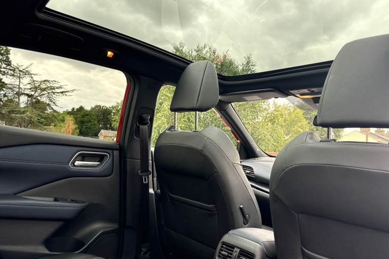 ..Advanced windscreen head up display, Android auto/Apple CarPlay (Wired), Blind spot warning, Drive assist, Drive modes (sport, normal, eco), Electric speed sensitive power steering, Emergency and breakdown call, Front and rear parking sensors, Full Digital 12.3'' TFT Digital Combimeter, Google maps services - search, weather, 3D maps and Google street view, Hands free power tailgate, Idle stop/start system, Intelligent around view monitor, Intelligent Cruise control (ICC), Intelligent driver alert system, Intelligent forward collision warning, Intelligent lane intervention, Lane departure prevention, Lane departure warning system, Lane keep assist, Moving object detection, Nissan connect 12.3 inch touchscreen infotainment system, Nissan connect navigation, Push button starter, Rear cross traffic alert, Rear view camera, Remote control services - door locks, lights, horn and car locator, Telematics - notifications and connectivity services, TomTom live traffic services, Traffic sign recognition with legal speed adjustment, Trip computer, Virtual personal assistant and firmware over the air capability, Wireless apple carplay, Wireless charging pad, 6 speakers, AM/FM audio system with DAB, Bluetooth audio streaming, Front USB connections (Type-A and Type-C), Rear USB charging only ports (Type-A and Type-C), Auto dimming rear view mirror, Auto rear wiper when reversing, Automatic hazard signal with emergency stop signal, Body colour mirror caps, Body coloured door handles, Bodyside mouldings, Chrome side window finisher, Door handle with button, Electric auto folding door mirrors, Electrically adjustable and heated door mirrors with LED turn indicator, Follow me home headlights, Front and rear LED turning signals, Headlights auto levelling system, Intelligent auto headlights, LED 3rd brake light, LED daytime running lights, LED headlights with adaptive driving beam, LED rear lights, One touch front and rear electric windows with remote opening and closing, Partially body coloured bumpers, Privacy glass, Rear bumper with graphite insert, Rear reversing light (bulb lighting), Rear roof spoiler, Rear side wing doors, Rear styling plate, Shark fin antenna, Splash free rain sensing wipers, Super UV and infrared cut glass, Thermaclear heated windscreen, Three blink turn signal, 12v power socket in dashboard and luggage, 2x Rear coat hooks, 3 bench rear seats in 2nd row, 3 rear headrests, 4 folding assist grip, 6 Luggage hooks - 4 on floor, 2 on side, 60/40 split