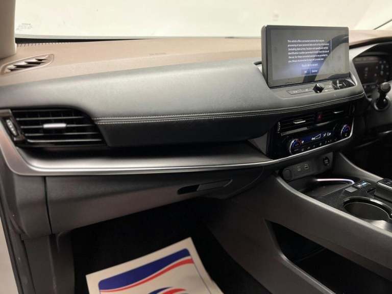 This 2023 Nissan X-Trail e-POWER N-Connecta boasts exceptionally low mileage for its year, having covered just 18,500 miles. This Euro 6 compliant model features a responsive 1.5L petrol hybrid engine, offering an impressive 0-62mph acceleration in 8.0 seconds. The N-Connecta trim comes equipped with practical features such as front and rear parking sensors, including parking assistance, and intelligent auto headlights that activate automatically. You'll also benefit from LED headlights for enhanced visibility and intelligent blind spot intervention to help keep you aware of your surroundings.The spacious boot offers ample room for all your luggage, making it ideal for family trips or everyday errands. Dual zone automatic air conditioning with a pollen filter ensures a comfortable cabin environment for all occupants, regardless of the weather outside. These features, combined with its efficient hybrid technology and swift acceleration, demonstrate how this Nissan X-Trail stands out from other vehicles in its class, providing a refined and capable driving experience.