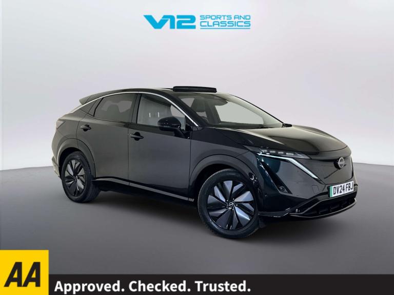 Finished in a striking Green colour, this Ariya is sure to turn heads wherever you go. But it's not just about looks - with a powerful 242 ps electric motor, this SUV delivers an exhilarating driving experience that's both eco-friendly and efficient. Equipped with a 22kW charger, you can easily top up the battery and keep on cruising without any hassle. Plus, with a spacious interior and advanced tech features, the Nissan Ariya offers comfort and convenience for every journey. Don't miss out on the opportunity to own this incredible Nissan Ariya 87kWh Evolve SUV. Visit us today and experience the future of driving for yourself.Competitive finance is also available.We are open 7 days a week and have more than 1500 cars to choose from.All our Euro 4 Petrol and Euro 6 Diesel vehicles meet the ULEZ standard.Vehicle specification can be found below. From time to time vehicles have manufacturer recalls notified. Please read our recall policy on our website for further information. Please be advised that the advertised electric vehicle (EV) listings may experience battery degradation over time, resulting in reduced performance and range compared to the original specifications. Factors such as usage patterns, environmental conditions, and charging practices can contribute to this degradation. While we strive to provide accurate information, the actual battery health and performance of each EV may vary. Customers are encouraged to conduct thorough research and consider the potential impact of battery degradation before making a purchase decision. We recommend consulting with a qualified technician or conducting a battery health inspection for further assessment. This vehicle comes with an AVILOO Battery Health Certificate - the global standard for EV battery testing. Full independent analysis confirms excellent battery condition with detailed State of Health assessment, cell-level checks, and accurate range data. Certificate included with purchase for your complete peace of mind and future resale value.Disclaimer: While every effort is made to ensure the accuracy of vehicle specifications, features, and descriptions, errors and omissions may occur. Specifications and equipment may vary and may not be present on the vehicle at the point of sale. Buyers are advised to confirm all details with the seller before completing a purchase.