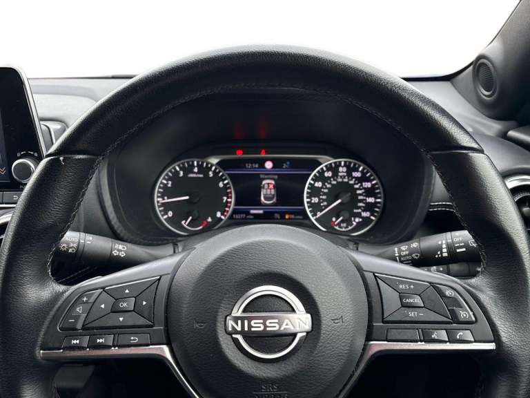 ..7'' full colour TFT screen combimeter, Apple CarPlay and Google Android auto, Drive modes select (Eco, normal and sport), Emergency and breakdown call, Front parking sensor, Idle start/stop system, Intelligent lane intervention, Lane departure warning system, Nissan connect 8'' touch screen entertainment system, Nissan connect nav with TomTom traffic, Nissan connect services and Wifi connection, Outside temperature sensor, Power Steering, Rear parking sensor, Traffic sign recognition, Trip computer, Voice recognition, Gasoline particulate filter, 6 speakers, Bluetooth system, USB, Aux-in and 12V socket, DAB Digital radio, Rear console USB port, Auto dimming interior rear view mirror, Auto headlights, Automatic hazard signal with emergency stop signal, Body colour bumpers, Body colour door handles, Electrically adjustable door mirrors with integrated indicators, Follow me home headlights, Front and rear electric window with one touch driver window, Heated and auto folding door mirrors, High beam assist, LED 3rd brake light, LED daytime running lights, LED headlamps, LED rear fog lamp, LED rear lamps, Rain sensor windscreen wipers, Rear privacy glass, Rear side wing doors, Rear wiper, Roof spoiler, Shark fin roof antenna in Pearl Black, Three blink turn signal, 3 height adjustable rear headrests, 3 seat bench in 2nd row, 60/40 split folding rear seat, Automatic climate control, Card holder on driver sunvisor, Cloth upholstery with black and metallic grey syntech leather inserts, Driver and passenger sliding and reclining seats, Driver side rear coat hanger, Driver/passenger sunvisors and vanity mirrors, Front and rear cabin lights, Front armrest, Front door pockets with bottle holders, Front head restraints, Front/rear passenger grab handles, Grey synthetic leather kneepad, Height adjustable driver's seat, Internal chrome door handles, Leather gearshift knob, Leather steering wheel, Luggage board, Luggage space lighting, Monoform sporty seats, Multifunction steering wheel, Rear door bottle holders, Single front passenger seat, Telescopic steering wheel adjustment, Two cupholders in front centre console, Two rear isofix child seat anchorage points with top tether, Welcome light and console tray ambient lighting, ABS with EBD and brake assist, Active ride control, Active Trace Control, Driver and passenger airbags, Driver and passenger side airbags, Electric handbrake with auto hold function, Electronic Stability Programme (ESP), Front and rear curtain