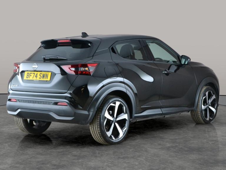 Step into comfort and innovation with this stylish black Nissan Juke. Enjoy top features like plush heated leather seats, a toasty heated steering wheel, and immersive BOSE sound with Apple CarPlay for seamless connectivity. Parking is effortless with a 360-degree surround view camera and reversing camera. Benefit from advanced tech like Active Lane Assist, keyless entry, sat nav, and bright LED headlights. This Juke blends sporty SUV looks with luxury and smart technology ready to impress on every drive. 1 service recorded, last serviced on 18/09/2025 at 11,413 miles. MOT to 23/09/2027. Visit our website for service history, online valuation, full vehicle specification plus multiple images. This vehicle is VAT qualifying. Any feature/option specified here is from 3rd party data. We cannot guarantee the accuracy of any specification supplied by a 3rd party. We recommend that you physically check the specification of the vehicle on site prior to purchase. This information does not form part of the buying contract. Terms & Conditions apply. We have over 2,000 cars available from our 10 national branches, check our website to see all our stock. Our Trustpilot rating is 4.4/5 with over 9,000 reviews.