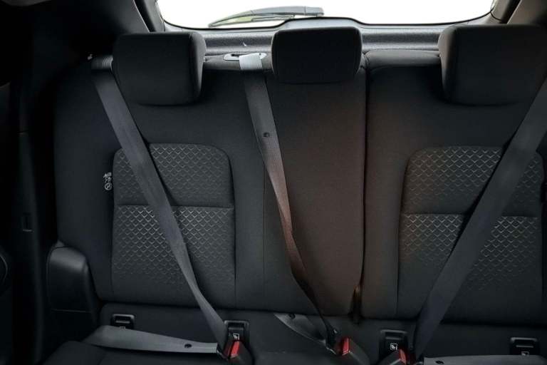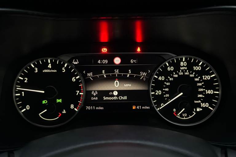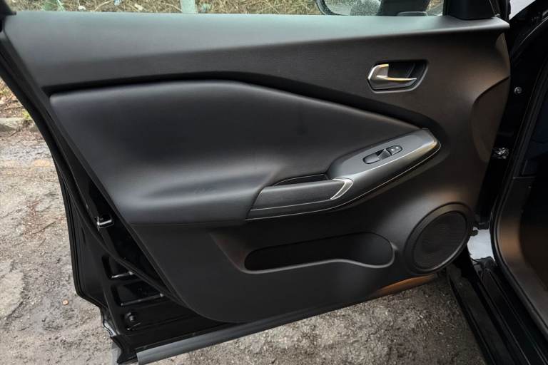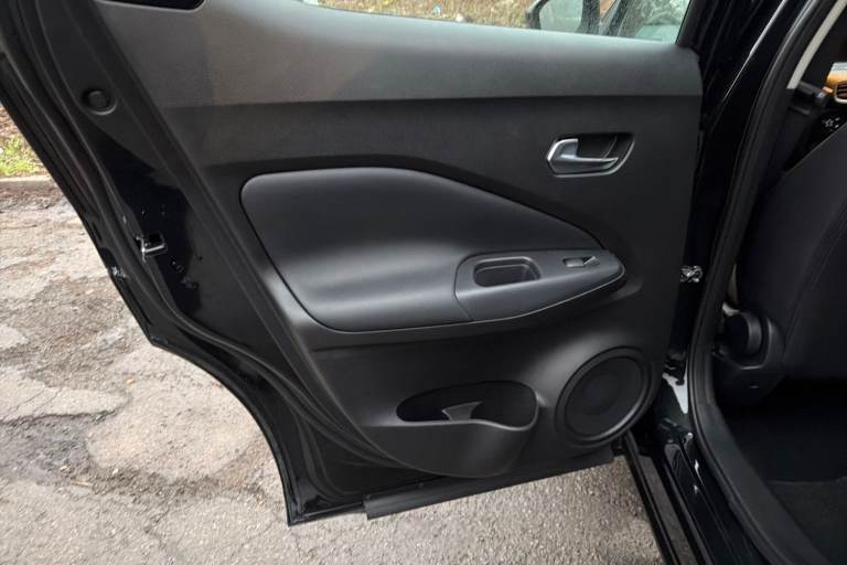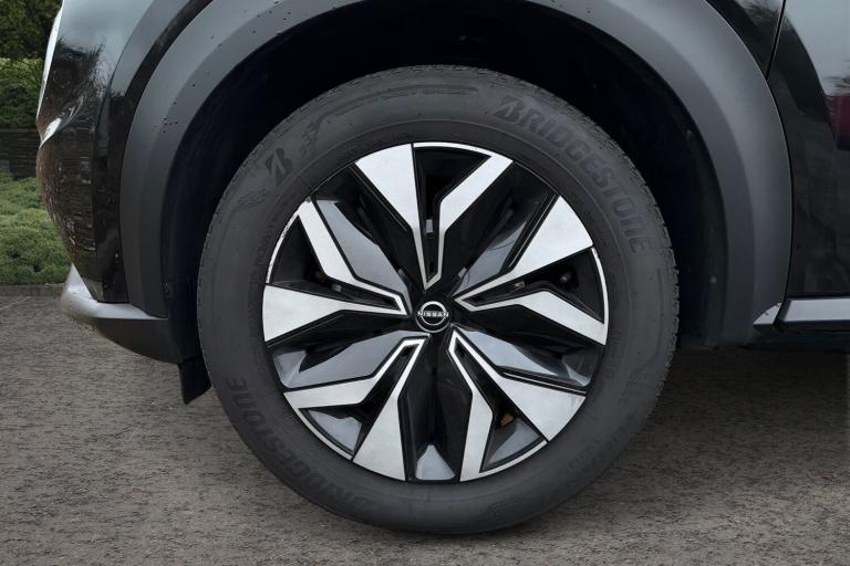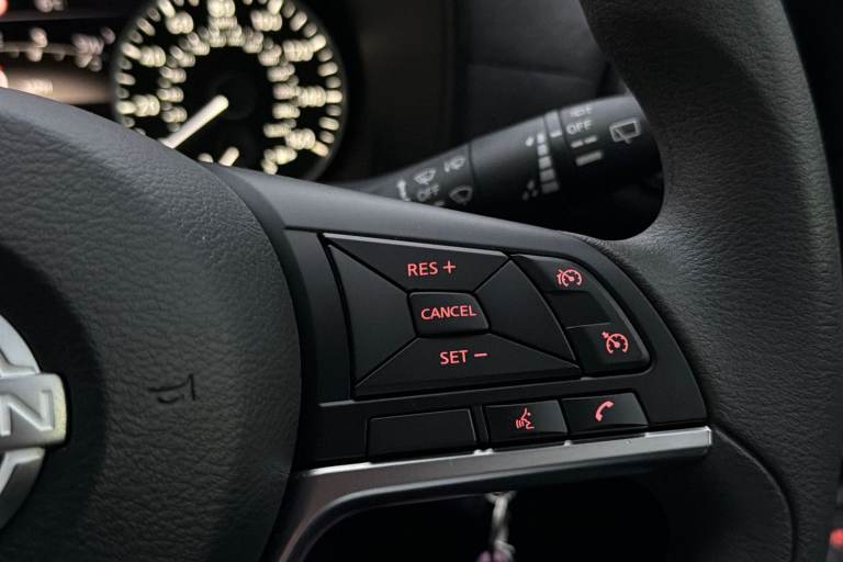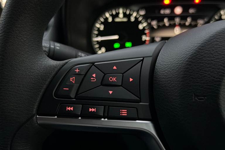 ..7'' full colour TFT screen combimeter, Cruise control + speed limiter, Emergency and breakdown call, Idle start/stop system, Intelligent driver alert system, Intelligent lane intervention, Lane departure warning system, Nissan connect 12.3'' touch screen entertainment system, Outside temperature sensor, Power Steering, Rear view camera, Traffic sign recognition, Trip computer, Voice recognition, WiFi connectivity, Wireless Apple CarPlay and Google Android auto, 2 X Rear console USB port, 4 speakers, Bluetooth system, USB, Aux-in and 12V socket, DAB Digital radio, Automatic hazard signal with emergency stop signal, Body colour door handles, Electrically adjustable door mirrors with integrated indicators, Follow me home headlights, Front and rear electric window with one touch driver window, High beam assist, LED 3rd brake light, LED daytime running lights, LED headlamps, LED rear fog lamp, LED rear lamps, Pearl black door mirrors, Rear side wing doors, Rear wiper, Roof spoiler, Shark fin roof antenna in solid Black, Three blink turn signal, 3 height adjustable rear headrests, 3 seat bench in 2nd row, 60/40 split folding rear seat, Cloth upholstery, Driver/passenger sunvisors and vanity mirrors, Front and rear cabin lights, Front armrest, Front door pockets with bottle holders, Front head restraints, Height adjustable driver's seat, Internal chrome door handles, Luggage space lighting, Monoform sporty seats, Multifunction steering wheel, Rear door bottle holders, Single front passenger seat, Smooth synthetic leather steering wheel, Telescopic steering wheel adjustment, Two cupholders in front centre console, Two rear isofix child seat anchorage points with top tether, Welcome light and console tray ambient lighting, ABS with EBD and brake assist, Active ride control, Active Trace Control, Driver and passenger airbags, Driver and passenger side airbags, Electric handbrake with auto hold function, Electronic Stability Programme (ESP), Front and rear curtain airbags, Height adjustable seatbelts, Hill start assist, Intelligent emergency braking with pedestrian and cyclist recognition, Rear door child safety locks, Seatbelt reminder for driver/front passenger and rear seats, Three 3 point rear seatbelts, Traction control, Tyre pressure monitoring system, VDC Dynamic Vehicle Control, Alarm, Immobiliser, Remote central locking, 17'' Sakura Flex wheels, Tyre puncture repair kit