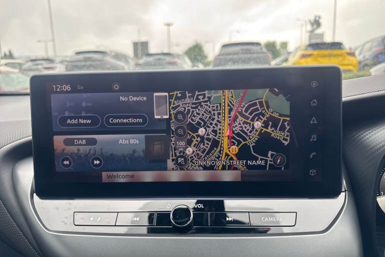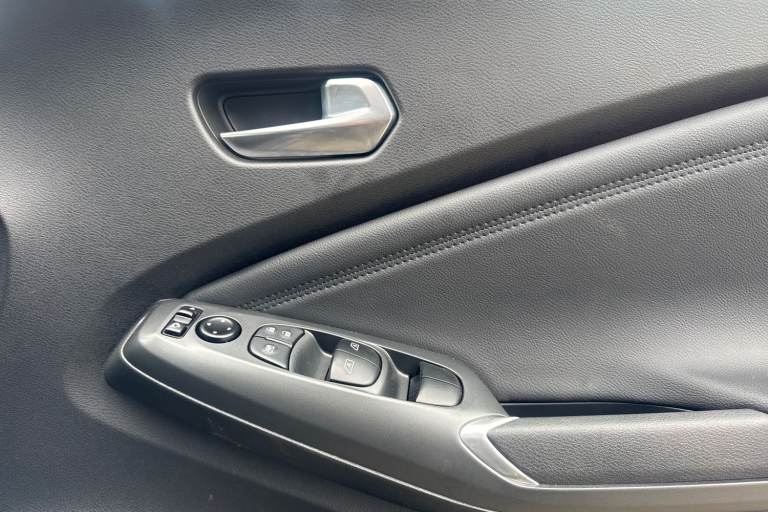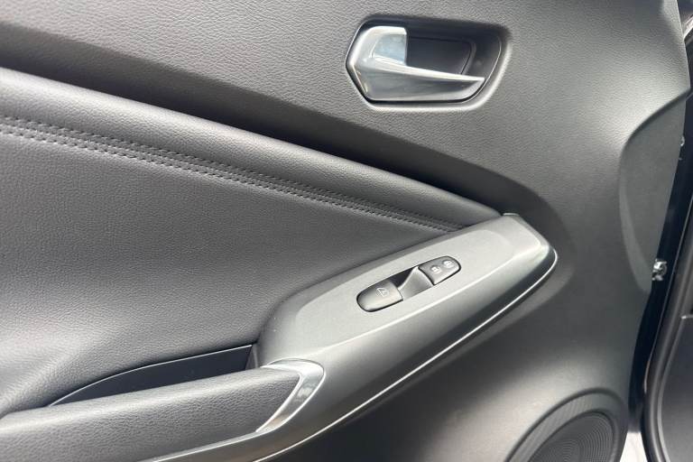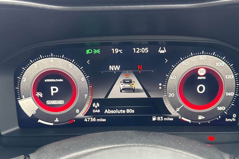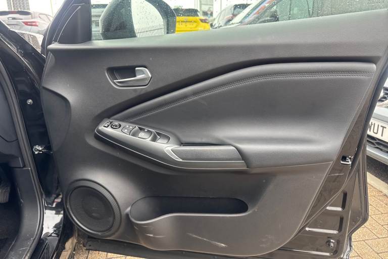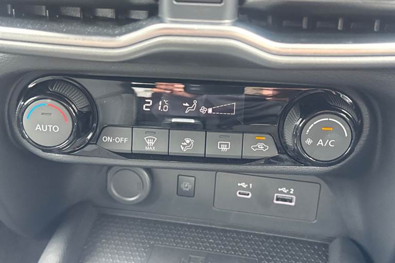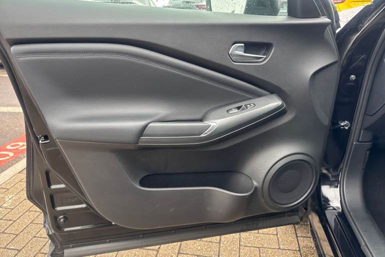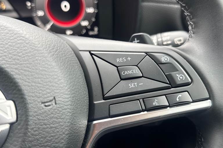 ..12.3'' full colour TFT screen combimeter, Drive modes select (Eco, normal and sport), Emergency and breakdown call, Front parking sensor, Idle start/stop system, Intelligent driver alert system, Intelligent lane intervention, Lane departure warning system, Nissan connect 12.3'' touch screen entertainment system, Nissan connect nav with TomTom traffic, Nissan connect services, Outside temperature sensor, Power Steering, Rear parking sensor, Stop/start button, Traffic sign recognition, Trip computer, Voice recognition, WiFi connectivity, Wireless Apple CarPlay and Google Android auto, Wireless Smartphone charger, 2 X Rear console USB port, 6 speakers, Bluetooth system, USB, Aux-in and 12V socket, DAB Digital radio, Auto dimming frameless rear view mirror, Automatic hazard signal with emergency stop signal, Body colour door handles, Electrically adjustable door mirrors with integrated indicators, Follow me home headlights, Front and rear electric window with one touch driver window, Heated and auto folding door mirrors, High beam assist, LED 3rd brake light, LED daytime running lights, LED headlamps, LED rear fog lamp, LED rear lamps, One touch passenger window, Rain sensor windscreen wipers, Rear privacy glass, Rear side wing doors, Rear wiper, Roof spoiler, Shark fin roof antenna in solid Black, Three blink turn signal, 3 height adjustable rear headrests, 3 seat bench in 2nd row, 60/40 split folding rear seat, Automatic climate control, Card holder on driver sunvisor, Cloth/Synthetic leather with melange fabric inserts, Driver side rear coat hanger, Driver/passenger sunvisors and vanity mirrors, Front and rear cabin lights, Front armrest, Front door pockets with bottle holders, Front head restraints, Front/rear passenger grab handles, Height adjustable driver's seat, Internal chrome door handles, Leather gearshift knob, Luggage board, Luggage space lighting, Monoform sporty seats, Multifunction steering wheel, Rear door bottle holders, Single front passenger seat, Smooth synthetic leather steering wheel, Steering wheel mounted gearshift paddles, Synthetic leather kneepad, Telescopic steering wheel adjustment, Two cupholders in front centre console, Two rear isofix child seat anchorage points with top tether, Welcome light and console tray ambient lighting, ABS with EBD and brake assist, Active ride control, Active Trace Control, Driver and passenger airbags, Driver and passenger side airbags, Electric handbrake with auto hold function, Electronic