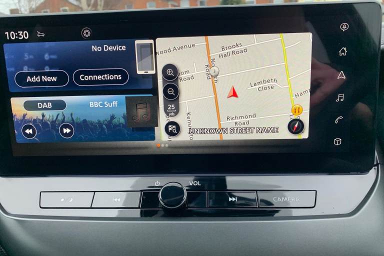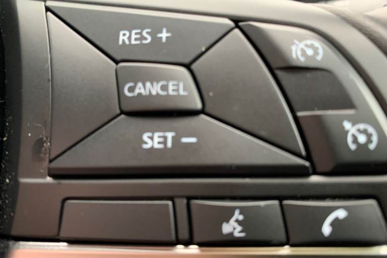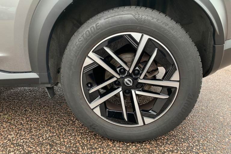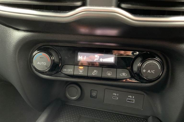 ..12.3'' full colour TFT screen combimeter, Drive modes select (Eco, normal and sport), Emergency and breakdown call, Front parking sensor, Idle start/stop system, Intelligent driver alert system, Intelligent lane intervention, Lane departure warning system, Nissan connect 12.3'' touch screen entertainment system, Nissan connect nav with TomTom traffic, Nissan connect services, Outside temperature sensor, Power Steering, Rear parking sensor, Stop/start button, Traffic sign recognition, Trip computer, Voice recognition, WiFi connectivity, Wireless Apple CarPlay and Google Android auto, Wireless Smartphone charger, 2 X Rear console USB port, 6 speakers, Bluetooth system, USB, Aux-in and 12V socket, DAB Digital radio, Auto dimming frameless rear view mirror, Automatic hazard signal with emergency stop signal, Body colour door handles, Electrically adjustable door mirrors with integrated indicators, Follow me home headlights, Front and rear electric window with one touch driver window, Heated and auto folding door mirrors, High beam assist, LED 3rd brake light, LED daytime running lights, LED headlamps, LED rear fog lamp, LED rear lamps, One touch passenger window, Rain sensor windscreen wipers, Rear privacy glass, Rear side wing doors, Rear wiper, Roof spoiler, Shark fin roof antenna in solid Black, Three blink turn signal, 3 height adjustable rear headrests, 3 seat bench in 2nd row, 60/40 split folding rear seat, Automatic climate control, Card holder on driver sunvisor, Cloth/Synthetic leather with melange fabric inserts, Driver side rear coat hanger, Driver/passenger sunvisors and vanity mirrors, Front and rear cabin lights, Front armrest, Front door pockets with bottle holders, Front head restraints, Front/rear passenger grab handles, Height adjustable driver's seat, Internal chrome door handles, Leather gearshift knob, Luggage board, Luggage space lighting, Monoform sporty seats, Multifunction steering wheel, Rear door bottle holders, Single front passenger seat, Smooth synthetic leather steering wheel, Steering wheel mounted gearshift paddles, Synthetic leather kneepad, Telescopic steering wheel adjustment, Two cupholders in front centre console, Two rear isofix child seat anchorage points with top tether, Welcome light and console tray ambient lighting, ABS with EBD and brake assist, Active ride control, Active Trace Control, Driver and passenger airbags, Driver and passenger side airbags, Electric handbrake with auto hold function, Electronic