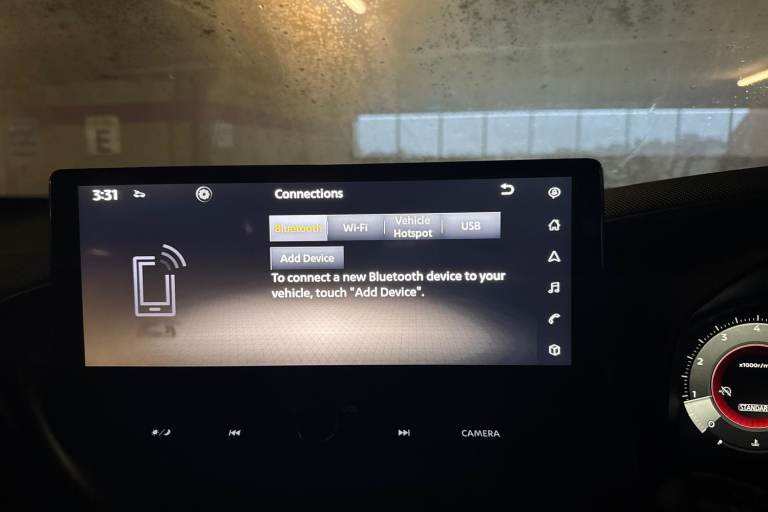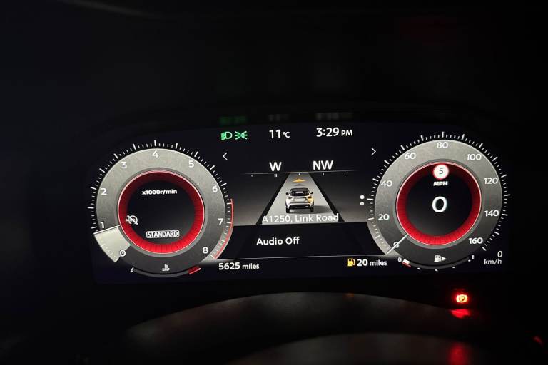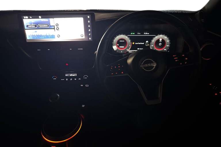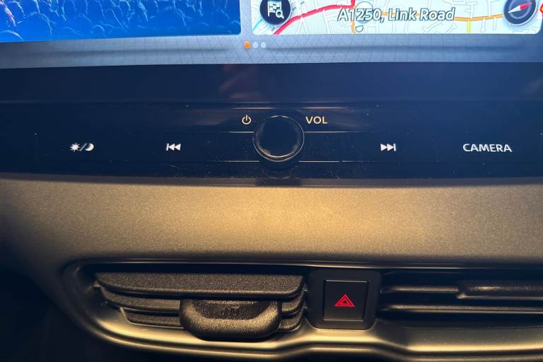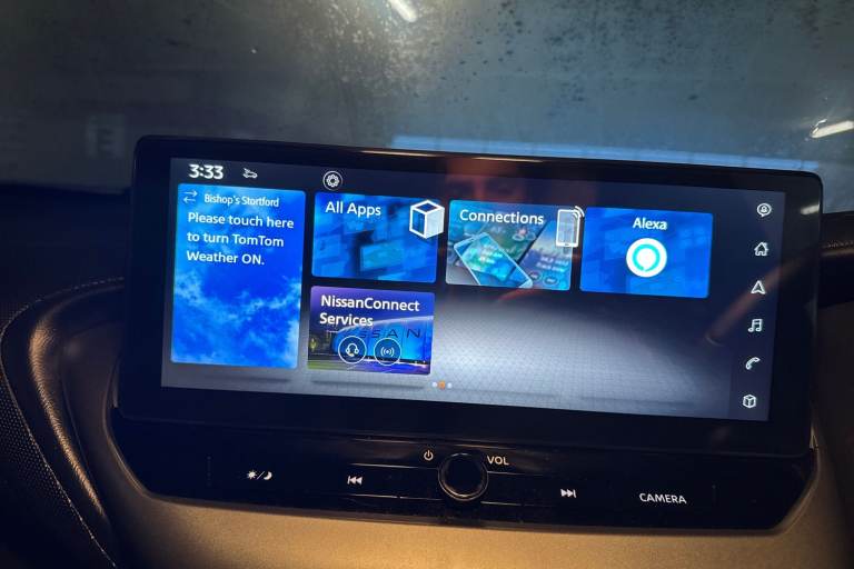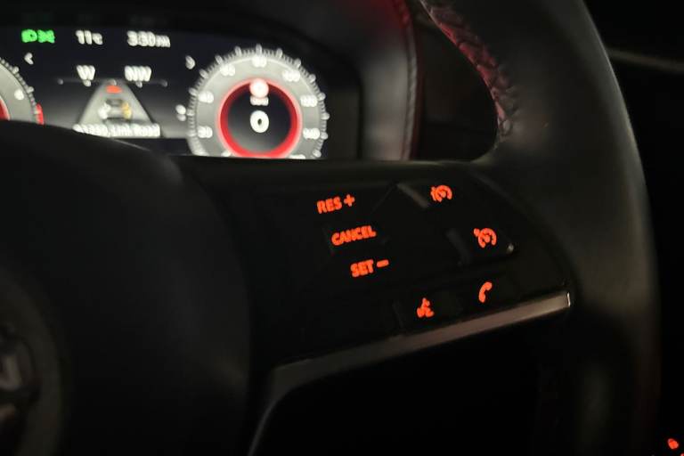 ..12.3'' full colour TFT screen combimeter, Drive modes select (Eco, normal and sport), Emergency and breakdown call, Front parking sensor, Idle start/stop system, Intelligent driver alert system, Intelligent lane intervention, Lane departure warning system, Nissan connect 12.3'' touch screen entertainment system, Nissan connect nav with TomTom traffic, Nissan connect services, Outside temperature sensor, Power Steering, Rear parking sensor, Stop/start button, Traffic sign recognition, Trip computer, Voice recognition, WiFi connectivity, Wireless Apple CarPlay and Google Android auto, Wireless Smartphone charger, 2 X Rear console USB port, 6 speakers, Bluetooth system, USB, Aux-in and 12V socket, DAB Digital radio, Auto dimming frameless rear view mirror, Automatic hazard signal with emergency stop signal, Body colour door handles, Electrically adjustable door mirrors with integrated indicators, Follow me home headlights, Front and rear electric window with one touch driver window, Heated and auto folding door mirrors, High beam assist, LED 3rd brake light, LED daytime running lights, LED headlamps, LED rear fog lamp, LED rear lamps, One touch passenger window, Rain sensor windscreen wipers, Rear privacy glass, Rear side wing doors, Rear wiper, Roof spoiler, Shark fin roof antenna in solid Black, Three blink turn signal, 3 height adjustable rear headrests, 3 seat bench in 2nd row, 60/40 split folding rear seat, Automatic climate control, Card holder on driver sunvisor, Cloth/Synthetic leather with melange fabric inserts, Driver side rear coat hanger, Driver/passenger sunvisors and vanity mirrors, Front and rear cabin lights, Front armrest, Front door pockets with bottle holders, Front head restraints, Front/rear passenger grab handles, Height adjustable driver's seat, Internal chrome door handles, Leather gearshift knob, Luggage board, Luggage space lighting, Monoform sporty seats, Multifunction steering wheel, Rear door bottle holders, Single front passenger seat, Smooth synthetic leather steering wheel, Synthetic leather kneepad, Telescopic steering wheel adjustment, Two cupholders in front centre console, Two rear isofix child seat anchorage points with top tether, Welcome light and console tray ambient lighting, ABS with EBD and brake assist, Active ride control, Active Trace Control, Driver and passenger airbags, Driver and passenger side airbags, Electric handbrake with auto hold function, Electronic Stability Programme (ESP), Front and rear curtain