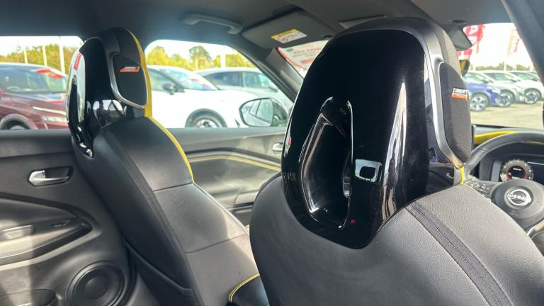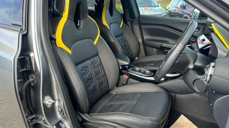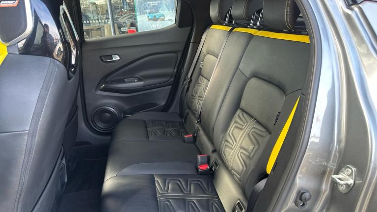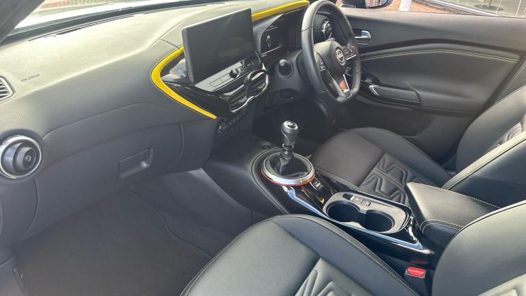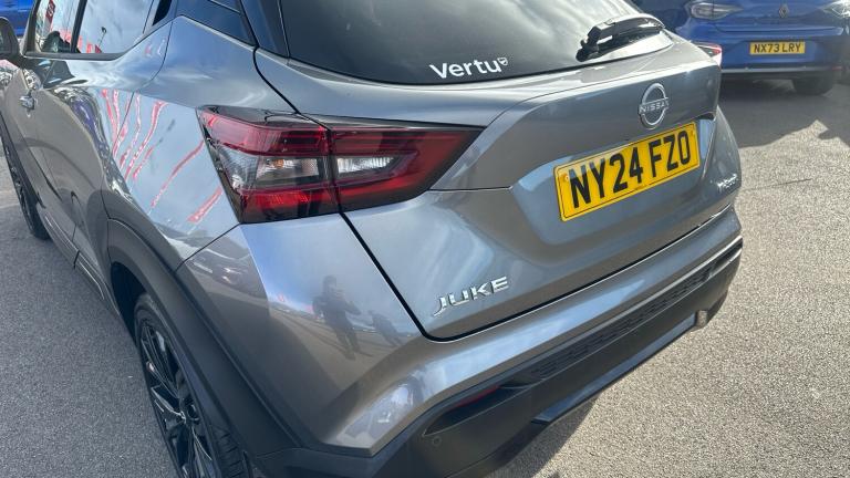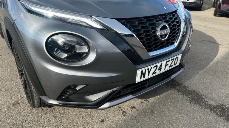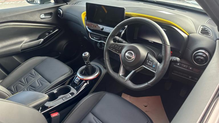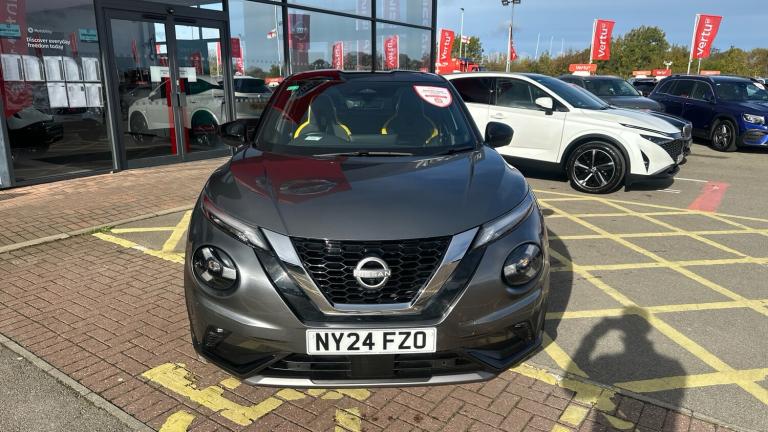 Gloucester Ford have this low mileage Nissan Juke 1.0 DiG-T N-Sport finished in Gun Metallic with contrasting Black roof. With its confident stance and refined interior its built for modern urban driving. This N-Sport trim stands out with 19 alloy wheels gloss black exterior detailing a contrasting roof design LED headlights and signature LED daytime running lights. Aerodynamic styling a bold front grille and a rear spoiler give the Juke a distinctive sporty presence. Inside the cabin combines practicality and premium comfort with cloth and synthetic leather sport seats featuring yellow contrast stitching soft-touch materials and a D-shaped multi-function steering wheel. Standard equipment includes automatic air conditioning keyless entry and start electric front and rear windows and a 60/40 split-folding rear bench. Infotainment Connectivity Nissan Connect touchscreen integrates Apple CarPlay Android Auto Bluetooth DAB digital radio voice control and USB connectivity. The 7inch digital driver display provides clear trip and performance data while steering-wheel controls ensure intuitive operation. Safety Driver Assistance features include Intelligent Emergency Braking with pedestrian and cyclist detection Lane Keep Assist High Beam Assist Traffic Sign Recognition Hill Start Assist Rear Parking Sensors and a Reversing Camera part of Nissans Intelligent Mobility suite..Air Conditioning, Climate Control, Metallic Paint, Cruise Control, Satellite Navigation, Alloy Wheels, Leather Seats, Heated Seats, DAB Radio, Bluetooth, Parking Sensors, Low Mileage, USB, Keyless Entry-Push Button Start, Apple-Android Play, Rear Camera, Auto Lights, Electric Folding Mirrors, Lane Departure& Rain Sensors, Rear wiper, Rear privacy glass, One touch passenger window, Front and rear electric window with one touch driver window, Traction control, VDC Dynamic Vehicle Control, Hill start assist, Electronic Stability Programme (ESP), ABS with EBD and brake assist, Intelligent emergency braking with pedestrian and cyclist recognition, Electric handbrake with auto hold function, Wireless Smartphone charger, Voice recognition, Wireless Apple CarPlay and Google Android auto, WiFi connectivity, Power Steering, Rear parking sensor, Lane departure warning system, Front parking sensor, Traffic sign recognition, Intelligent lane intervention