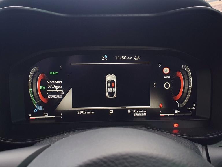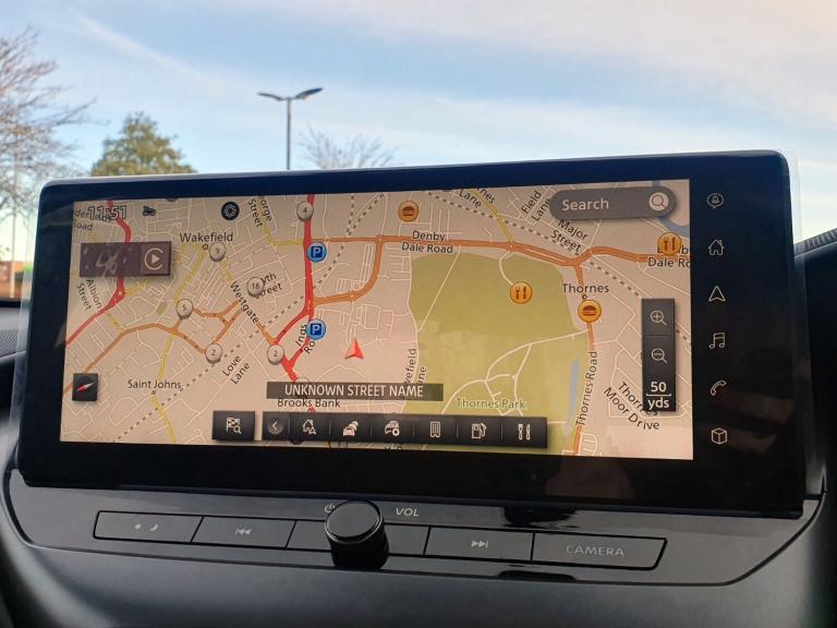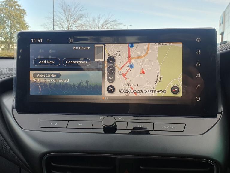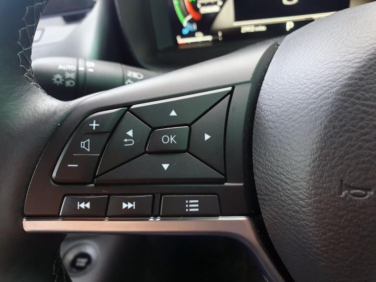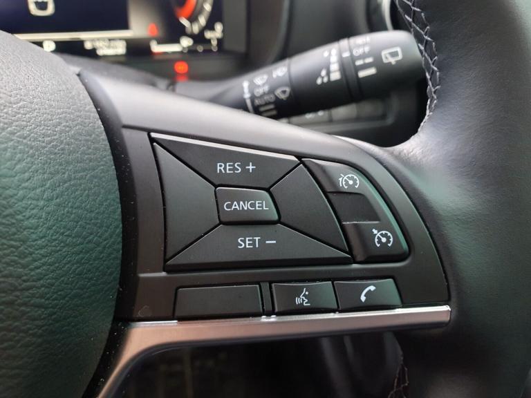 ..12.3'' full colour TFT screen combimeter, Drive modes select (Eco, normal and sport), e-Pedal step, Emergency and breakdown call, EV mode switch, Front parking sensor, Intelligent driver alert system, Intelligent lane intervention, Lane departure warning system, Nissan connect 12.3'' touch screen entertainment system, Nissan connect nav with TomTom traffic, Nissan connect services, Outside temperature sensor, Power Steering, Rear parking sensor, Stop/start button, Traffic sign recognition, Trip computer, Voice recognition, WiFi connectivity, Wireless Apple CarPlay and Google Android auto, Wireless Smartphone charger, 2 X Rear console USB port, 6 speakers, Bluetooth system, USB, Aux-in and 12V socket, DAB Digital radio, Auto dimming frameless rear view mirror, Automatic hazard signal with emergency stop signal, Body colour door handles, Electrically adjustable door mirrors with integrated indicators, Follow me home headlights, Front and rear electric window with one touch driver window, Heated and auto folding door mirrors, High beam assist, LED 3rd brake light, LED daytime running lights, LED headlamps, LED rear fog lamp, LED rear lamps, One touch passenger window, Rain sensor windscreen wipers, Rear privacy glass, Rear side wing doors, Rear wiper, Roof spoiler, Shark fin roof antenna in solid Black, Three blink turn signal, 3 height adjustable rear headrests, 3 seat bench in 2nd row, 60/40 split folding rear seat, Automatic climate control, Card holder on driver sunvisor, Cloth/Synthetic leather with melange fabric inserts, Driver side rear coat hanger, Driver/passenger sunvisors and vanity mirrors, Front and rear cabin lights, Front armrest, Front door pockets with bottle holders, Front head restraints, Front/rear passenger grab handles, Height adjustable driver's seat, Internal chrome door handles, Leather gearshift knob, Luggage board, Luggage space lighting, Monoform sporty seats, Multifunction steering wheel, Rear door bottle holders, Single front passenger seat, Smooth synthetic leather steering wheel, Synthetic leather kneepad, Telescopic steering wheel adjustment, Two cupholders in front centre console, Two rear isofix child seat anchorage points with top tether, Welcome light and console tray ambient lighting, ABS with EBD and brake assist, Active ride control, Active Trace Control, Driver and passenger airbags, Driver and passenger side airbags, Electric handbrake with auto hold function, Electronic Stability Programme (ESP), Front and rear