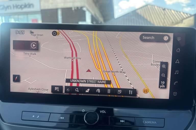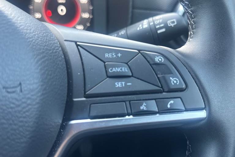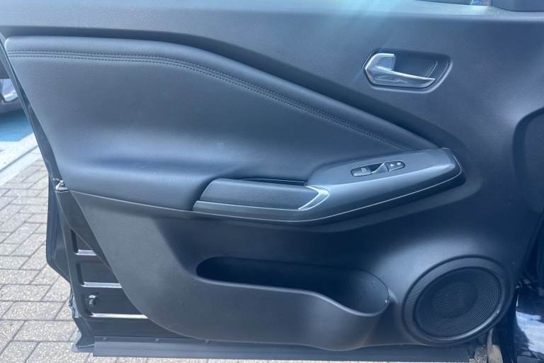 ..12.3'' full colour TFT screen combimeter, Drive modes select (Eco, normal and sport), e-Pedal step, Emergency and breakdown call, EV mode switch, Front parking sensor, Intelligent driver alert system, Intelligent lane intervention, Lane departure warning system, Nissan connect 12.3'' touch screen entertainment system, Nissan connect nav with TomTom traffic, Nissan connect services, Outside temperature sensor, Power Steering, Rear parking sensor, Stop/start button, Traffic sign recognition, Trip computer, Voice recognition, WiFi connectivity, Wireless Apple CarPlay and Google Android auto, Wireless Smartphone charger, 2 X Rear console USB port, 6 speakers, Bluetooth system, USB, Aux-in and 12V socket, DAB Digital radio, Auto dimming frameless rear view mirror, Automatic hazard signal with emergency stop signal, Body colour door handles, Electrically adjustable door mirrors with integrated indicators, Follow me home headlights, Front and rear electric window with one touch driver window, Heated and auto folding door mirrors, High beam assist, LED 3rd brake light, LED daytime running lights, LED headlamps, LED rear fog lamp, LED rear lamps, One touch passenger window, Rain sensor windscreen wipers, Rear privacy glass, Rear side wing doors, Rear wiper, Roof spoiler, Shark fin roof antenna in solid Black, Three blink turn signal, 3 height adjustable rear headrests, 3 seat bench in 2nd row, 60/40 split folding rear seat, Automatic climate control, Card holder on driver sunvisor, Cloth/Synthetic leather with melange fabric inserts, Driver side rear coat hanger, Driver/passenger sunvisors and vanity mirrors, Front and rear cabin lights, Front armrest, Front door pockets with bottle holders, Front head restraints, Front/rear passenger grab handles, Height adjustable driver's seat, Internal chrome door handles, Leather gearshift knob, Luggage board, Luggage space lighting, Monoform sporty seats, Multifunction steering wheel, Rear door bottle holders, Single front passenger seat, Smooth synthetic leather steering wheel, Synthetic leather kneepad, Telescopic steering wheel adjustment, Two cupholders in front centre console, Two rear isofix child seat anchorage points with top tether, Welcome light and console tray ambient lighting, ABS with EBD and brake assist, Active ride control, Active Trace Control, Driver and passenger airbags, Driver and passenger side airbags, Electric handbrake with auto hold function, Electronic Stability Programme (ESP), Front and rear