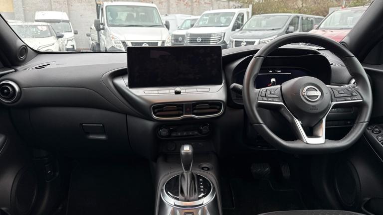Nissan Juke 1.6 Hybrid N-Connecta 5dr Auto Hybrid HatchbackOverviewThis Nissan Juke N-Connecta Hybrid is a well-specified automatic model with 10,410 miles, combining a self-charging hybrid powertrain with strong levels of technology and driver assistance. It offers smooth performance, excellent fuel economy and low running costs, making it ideal for both urban and longer-distance driving.Engine & Performance1.6 self-charging hybrid petrol engineAutomatic transmissionFront-wheel driveSmooth, quiet operation with excellent efficiency, particularly in townLower emissions compared to conventional petrol models.Rear wiper, Rain sensor windscreen wipers, Rear privacy glass, One touch passenger window, Front and rear electric window with one touch driver window, Traction control, VDC Dynamic Vehicle Control, Hill start assist, Electronic Stability Programme (ESP), ABS with EBD and brake assist, Intelligent emergency braking with pedestrian and cyclist recognition, Electric handbrake with auto hold function, Wireless Smartphone charger, Voice recognition, Wireless Apple CarPlay and Google Android auto, WiFi connectivity, Power Steering, Rear parking sensor, Lane departure warning system, Front parking sensor, Traffic sign recognition, Intelligent lane intervention, Intelligent driver alert system, Drive modes select (Eco, normal and sport), EV mode switch, Stop/start button, Trip computer, Outside temperature sensor, Emergency and breakdown call, Nissan connect nav with TomTom traffic, e-Pedal step, 12.3"" full colour TFT screen combimeter